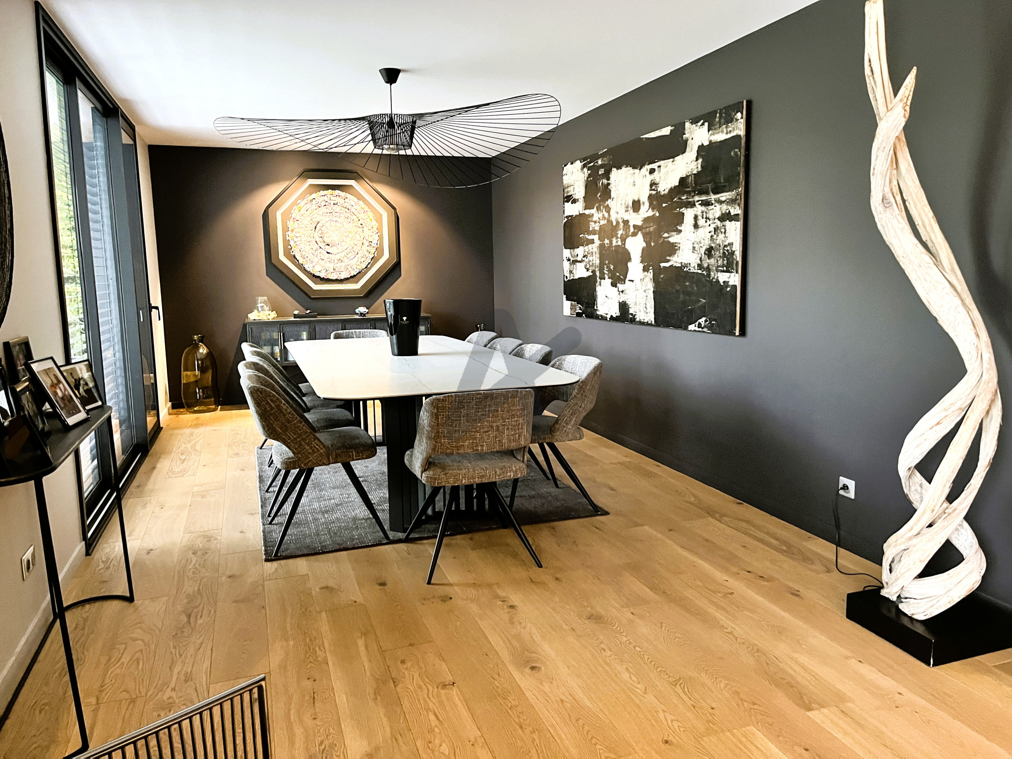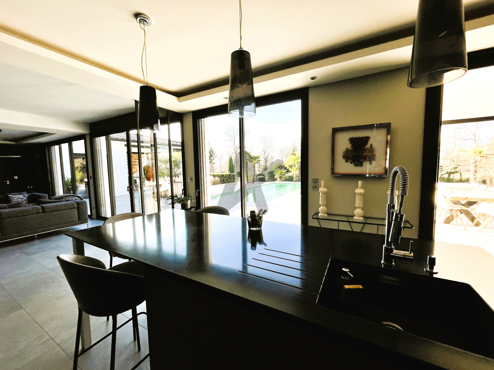 Située à St Bernard, village très prisé du Val de Saône, cette belle maison contemporaine construite en 2015 vous séduira par la qualité de ses prestations. Dès l’entrée vous serez attirés par la perspective sur la piscine et le jardin paysagé de 2800 m² bénéficiant d'un accès privé au chemin de halage. Cette villa moderne et baignée de lumière, est composée au rez-de-chaussée d'une cuisine entièrement équipée , d'un vaste espace salle à manger, d'un salon avec cheminée et d'une agréable suite parentale avec dressing et grande salle de bains. L'ensemble de ces pièces bénéficiant d'un accès direct aux extérieurs. L'étage dessert un bureau ainsi que quatre belles chambres et deux salles d'eau.