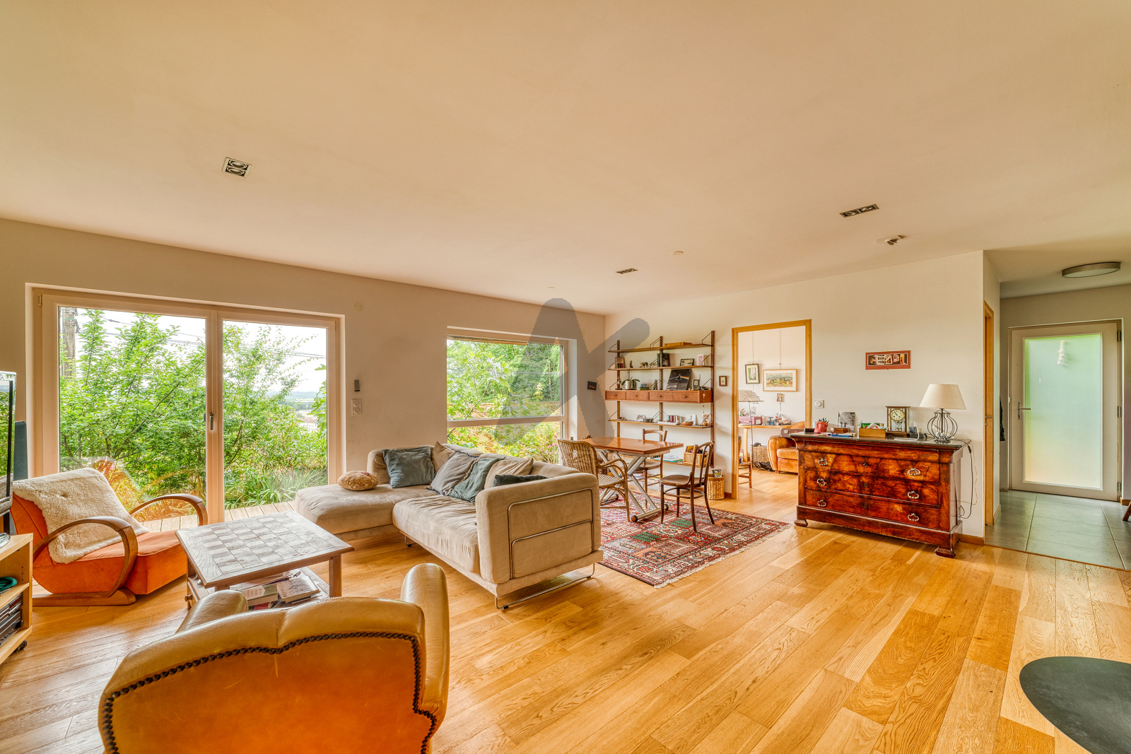 RARE. Au coeur du très prisé quartier de la Ville Haute. Nichée dans un écrin de verdure doté d'une vue imprenable sur la vallée. Proche de toutes les commodités (commerces, écoles, gare, accès autoroute). Venez découvrir cette magnifique Villa à ossature bois (red cedar), de 160m2 hab environ, construite dans le respect de la nature et de l'environnement. Vous serez séduits dés le passage de la porte d'entrée par sa spacieuse pièce de vie baignée de lumière orientée à l'Est et au Sud sur la Vallée, composée d'un beau séjour/salle à manger avec parquets et poêle à bois et d'une cuisine semi ouverte avec coin repas et accès au jardin et à la terrasse. A ce niveau, une chambre et un wc séparé. Au demi palier, une buanderie, un wc et une salle de bains. A l'étage, 4 belles chambres avec parquets dont 2 avec placard et une suite parentale avec salle d'eau. Aucun vis à vis sur cette maison. L'orientation de toutes les pièces à été pensée pour une lumière et un confort optimal. Maison à basse consommation énergétique, classée B, triple vitrage, récupération des eaux de pluie. Elle possède le charme d'un chalet et les prestations d'une maison contemporaine. Un très beau terrain paysagé et arboré (arbres fruitiers) d'une surface de 1000m2 environ et un grand hangar de 47m2 environ (garage, atelier) complètent ce Bien Unique. Classe energie B , classe Climat A .Energie finale 61Kwh/m2/an. Estimation des couts annuels d’énergie du logement entre 880 et 1230 euros. Honoraires charge vendeur. Les informations sur les risques auxquels ce bien est exposé sont disponibles sur le site Géorisques : www.georisques.gouv.fr. Agence ARLIM Prestige Ain Côtière Sandrine OLIVIER 04.78.06.06.69 ou 06.15.13.81.54