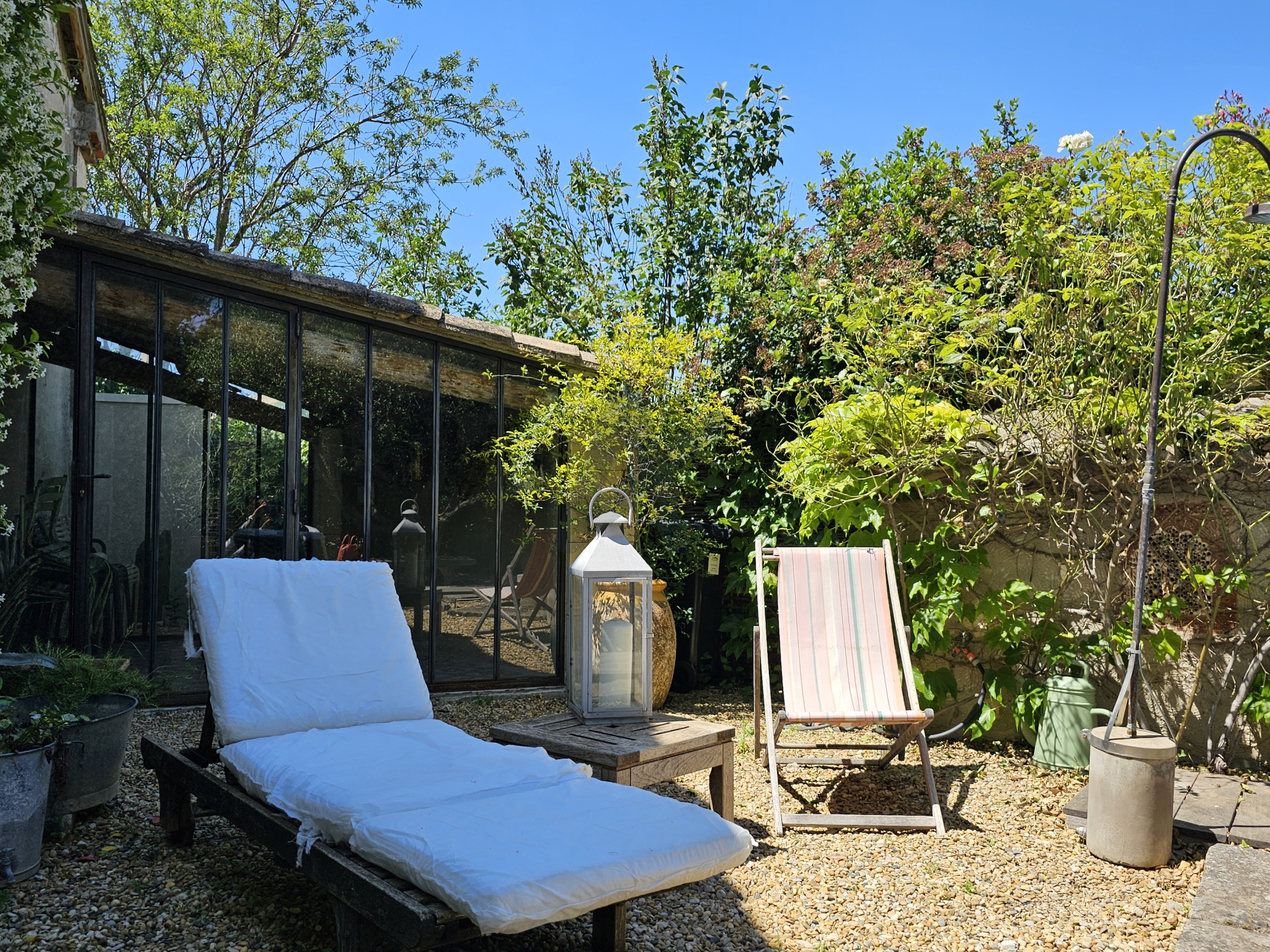 Au sud, une terrasse ensoleillée prolonge la vie de la maison.