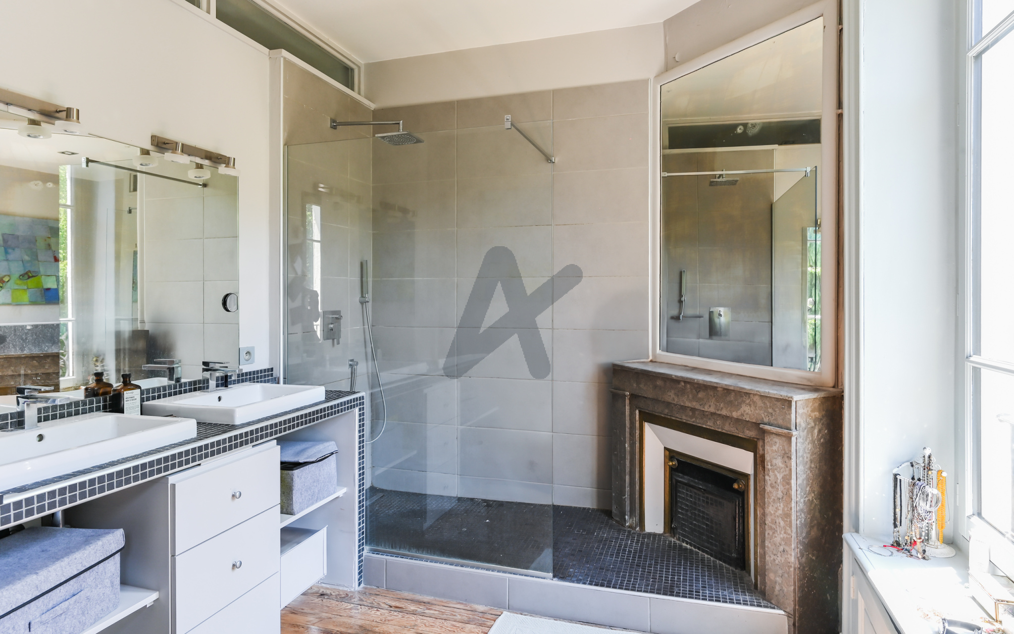 RARE, LYON 5, à proximité des transports et de toutes les commodités (proche St Just et Point du jour) ; très belle maison bourgeoise de 305 m² totalement réhabilitée dans les règles de l'art offrant au rez-de-chaussée un beau hall d'entrée en mosaïque desservant une double réception, cuisine USA et salle à manger ouvrant sur terrasse plein sud, grand salon avec cheminée, parquet et moulures. Un escalier en bois conduit aux étages supérieurs qui comprennent 6 chambres et 5 salles de bains, belle hauteur sous plafond, lingerie à l'étage et placards partout. Belles prestations alliant le charme de l'ancien et du contemporain... Très agréable jardin clos et arboré agrémenté d'une piscine au sel. Sous-sol complet entièrement carrelé avec chaufferie, cave, rangements et grande salle de jeux. Maison de charme, idéale grande famille. Produit rare à découvrir chez ARLIM PRESTIGE MONTS D'OR