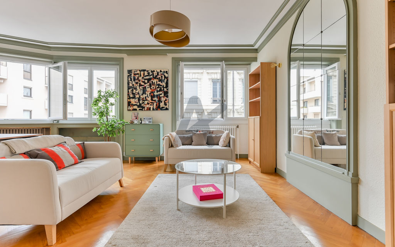 Rue Vendôme, à mi-chemin entre le métro Foch et le Parc de la Tête d'Or et à proximité immédiate des commerces et des transports, dans un immeuble PITANCE de standing, aux parties communes soignées. L' appartement est situé au 3ème étage avec ascenseur. Une belle entrée sépare l'espace de vie de la partie nuit. La cuisine de 11,5m2 à aménager selon vos envies, peut s'ouvrir sur le double séjour en retirant une simple cloison. Le salon d'angle de 32m2 (44m2 possible avec la cuisine) orienté au sud-est vous offre une luminosité exceptionnelle grâce à ses 5 larges fenêtres qui épousent la forme arrondie de l'immeuble. La partie nuit se compose de deux belles chambres de plus de 13m2 dont l'une avec dressing, d'une grande salle de bain avec baignoire et douche et d'un WC indépendant. L'appartement a été rénové en 2023: pose de doubles vitrages performants, électricité refaite et peinture intégrale. Votre sécurité est optimisée par une porte blindée et le gardien d'immeuble très apprécié. En annexe, une cave et un grenier. Possibilité de louer un parking (180€/mois) juste à côté. Les charges s'élèvent à 1100€/ trimestre (incluant l'eau et le chauffage colllectifs, le gardien et les parties communes). Pas de procédures en cours dans cette copropriété de 22 lots d'habitation.