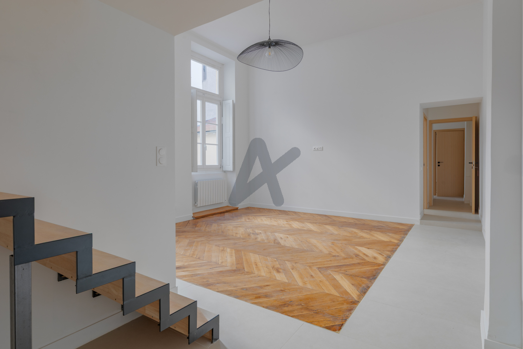 Lyon 2 ème, rue Auguste Comte, au premier étage d'un bel immeuble ancien, très belle rénovation pour cet appartement de 4 pièces et d'une surface de 72.21 m². Une belle pièce à vivre avec coin cuisine à aménager, deux chambres, chacune avec sa salle d'eau, un coin nuit en mezzanine propose un troisième couchage et une salle d'eau. Belles prestations pour ce bien qui offre un confort moderne et le cachet de l'ancien. Un balcon complète l'ensemble. Copropriété de 28 lots. Pas de procédure en cours. Arlim Presqu'île. Jean François Moustelou 06 95 35 36 36.