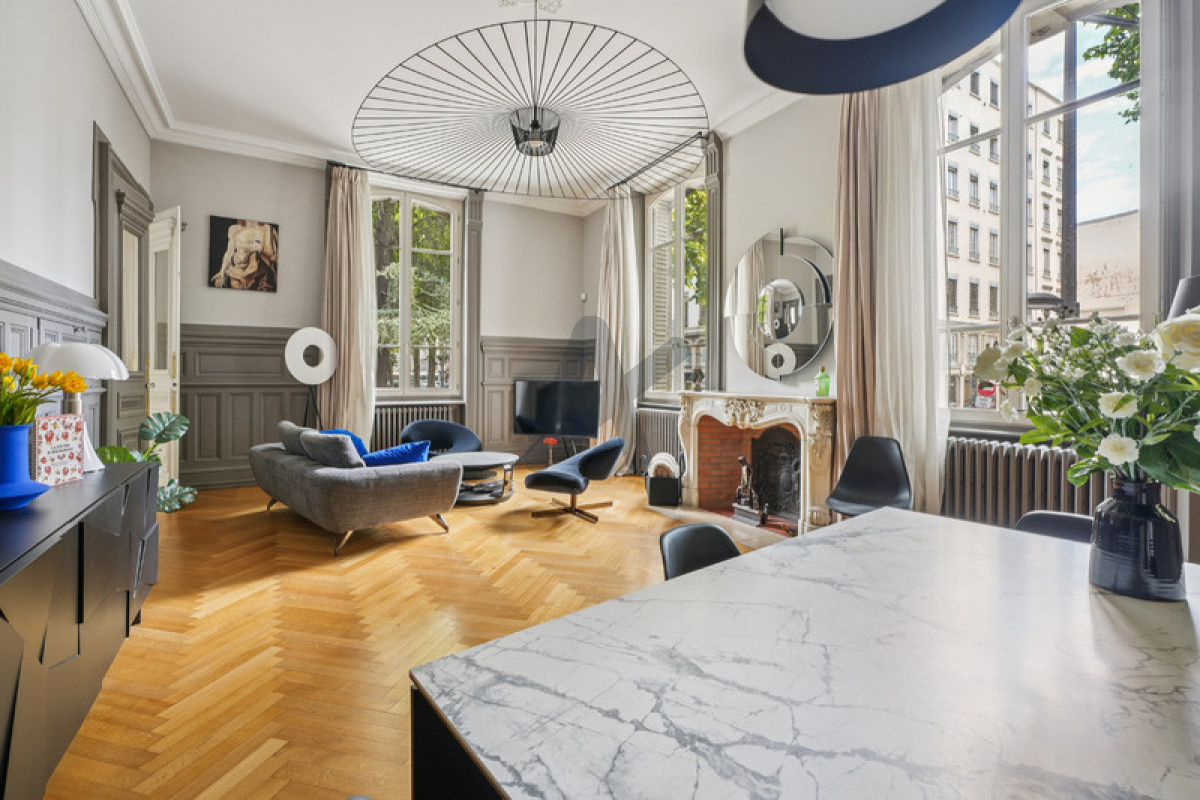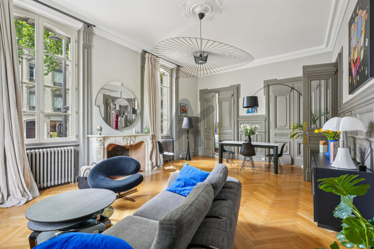 Lyon 3e, quai du Rhône, dans un immeuble d'exception, appartement "esprit maison" de 125,54 m2 en rez-de chaussée surélevé. Une superbe porte Art Déco s'ouvre sur une entrée avec dressing et distribue d'une part un espace de jour et un espace de nuit. Superbe salon d'angle avec une cheminée en marbre blanc, une cuisine séparée, un bureau pouvant faire office de deuxième salon ou de salle de jeux. L'espace nuit comprend deux chambres, une salle de bains et une salle de douche ainsi qu'une petite chambre d'appoint en mezzanine. Rénovation contemporaine de qualité et élégance de l'ancien avec une hauteur sous plafond de 3,71 m. Emplacement à vélo dans la cour e tpossibilité d'acquérir un garage en sus à 50 000 €. Quote-part annuelle de 1 332 €. ARLIM PRESTIGE SAXE Gipsy Gauthier 06 80 66 72 19. Les informations sur les risques auxquels ce bien est exposé sont disponibles sur le site Géorisques: www.georisques-gouv.fr