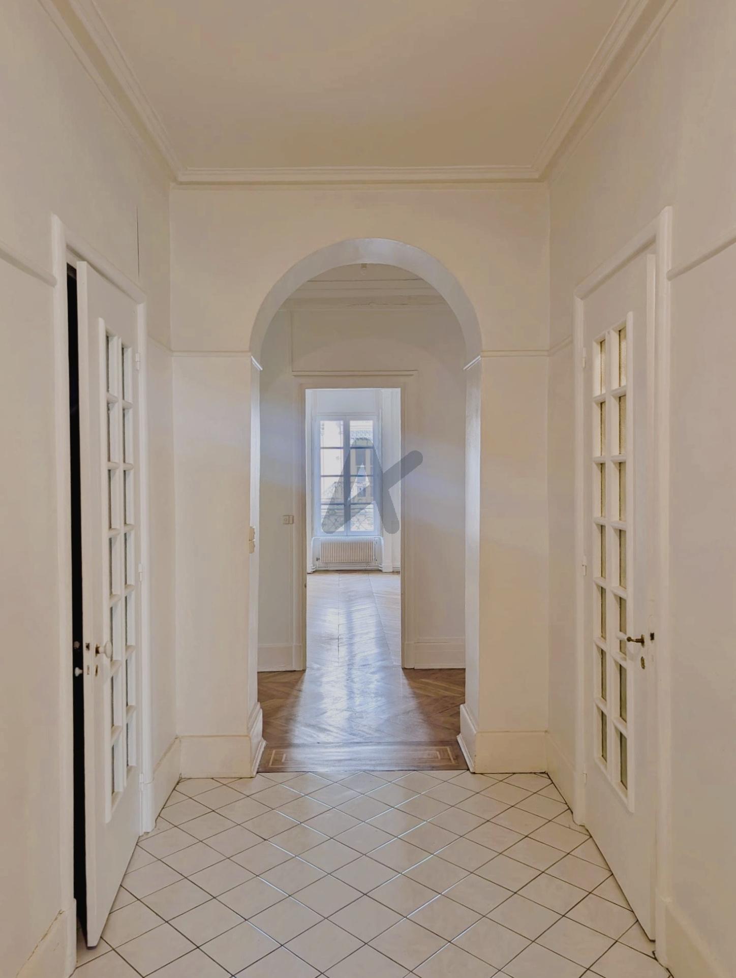À proximité immédiate de la Place Maréchal Lyautey, au cœur du très recherché 6ème arrondissement de Lyon, découvrez cet élégant appartement familial de 161 m², situé au 2ème étage avec ascenseur d’un immeuble ancien de caractère. Traversant Est / Ouest, ce bien se distingue par ses volumes généreux et son cachet architectural préservé. L’entrée, spacieuse et dotée de rangements, distribue une pièce de réception d’environ 34 m², sublimée par un parquet ancien, une alcôve et une hauteur sous plafond de 3,20 m, conférant à l’ensemble une atmosphère élégante et lumineuse. La cuisine indépendante de 28 m², peut être transformée en chambre parentale. L’espace nuit se compose de trois chambres aux volumes remarquables (17 m², 20 m² et 22 m²), idéales pour une vie familiale confortable. L’appartement dispose également de deux pièces d’eau (une salle de bains et une salle d’eau) ainsi que de toilettes indépendantes. Les éléments emblématiques de l’ancien - cheminées, parquet et belle hauteur sous plafond - ont été conservés et participent pleinement au caractère de ce bien.