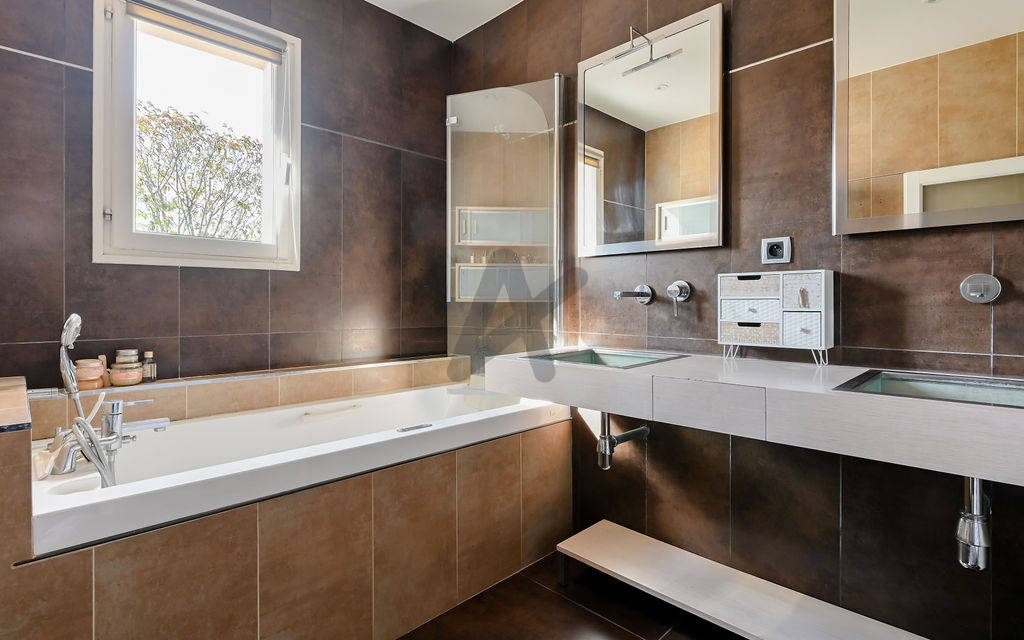 Au rez-de-jardin : Une belle pièce de vie lumineuse avec cuisine équipée, ouvrant sur la terrasse, le jardin et la piscine, une chambre, un bureau ainsi qu’un WC indépendant.