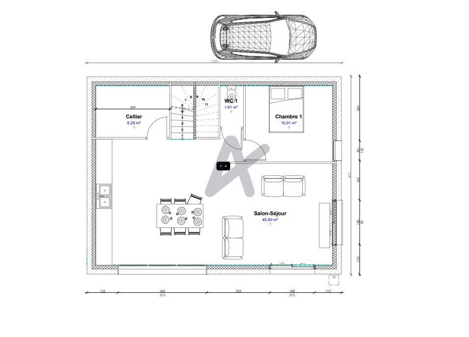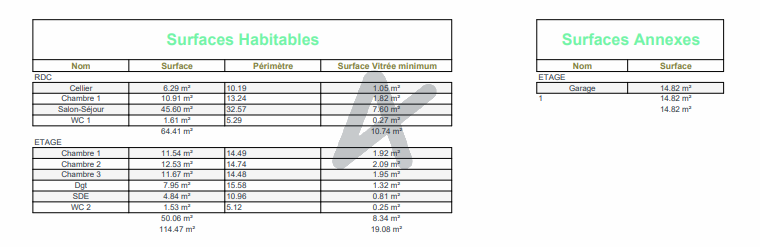Cette villa vous offre au RC un très grand séjour de plus de 45 m² avec une chambre, WC et cellier. A l'étage : 3 chambres, salle d'eau, WC et dégagement. Elle bénéficie en outre d'un garage de 14.8 m².