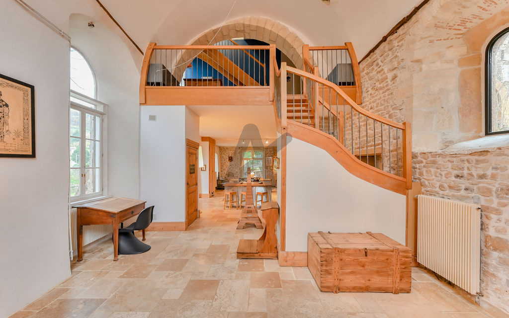 CO-EXCLUSIVITE - À seulement 25 minutes de Lyon, au coeur du val de Saône, nous vous invitons à découvrir cette magnifique propriété du XII? siècle. Venez vivre dans un cadre paisible et historique, située au fond d’une impasse, sur un terrain d’environ 2 400 m², avec une position dominante et une belle vue dégagée sur la Saône.