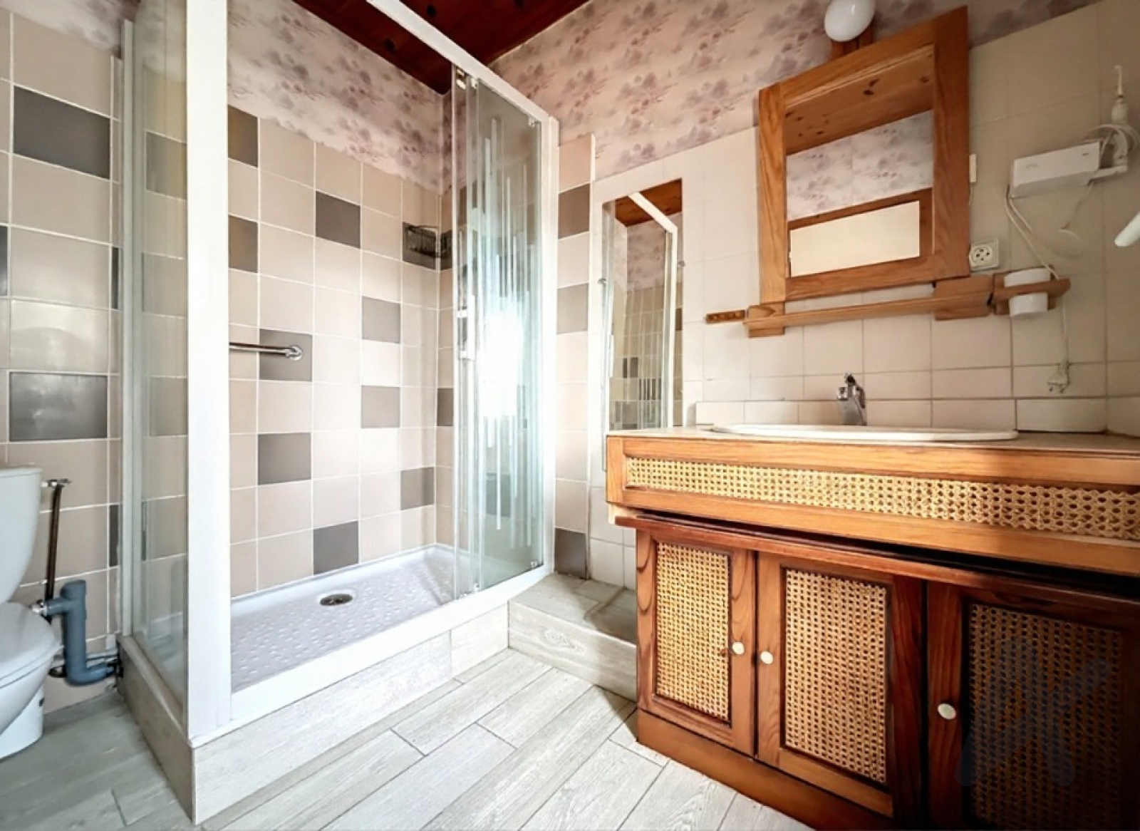 Vous profiterez d’une cuisine ouverte sur la salle à manger, équipée d’un poêle à granulés, créant une atmosphère conviviale et chaleureuse.