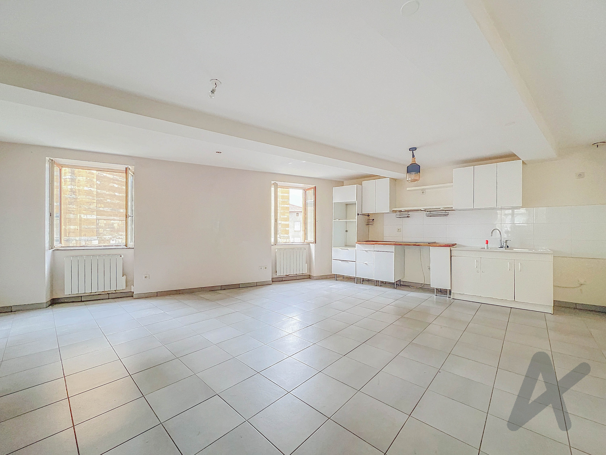 D’une superficie de + de 69 m² (et 63,2 m² en loi carrez), il offre un bel espace de vie lumineux de 32 m², comprenant une cuisine ouverte.