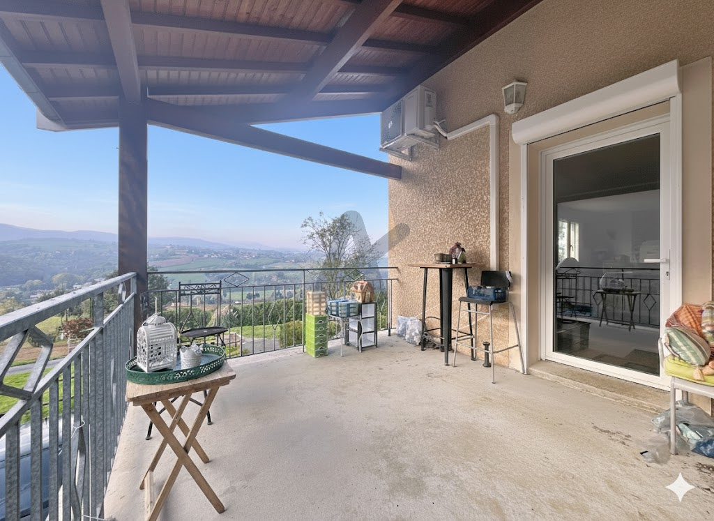 Situé sur les hauteurs du village de COURZIEU à proximité des commerces de La Giraudière, au calme, un superbe appartement T5 en duplex dans une maison de trois lots.