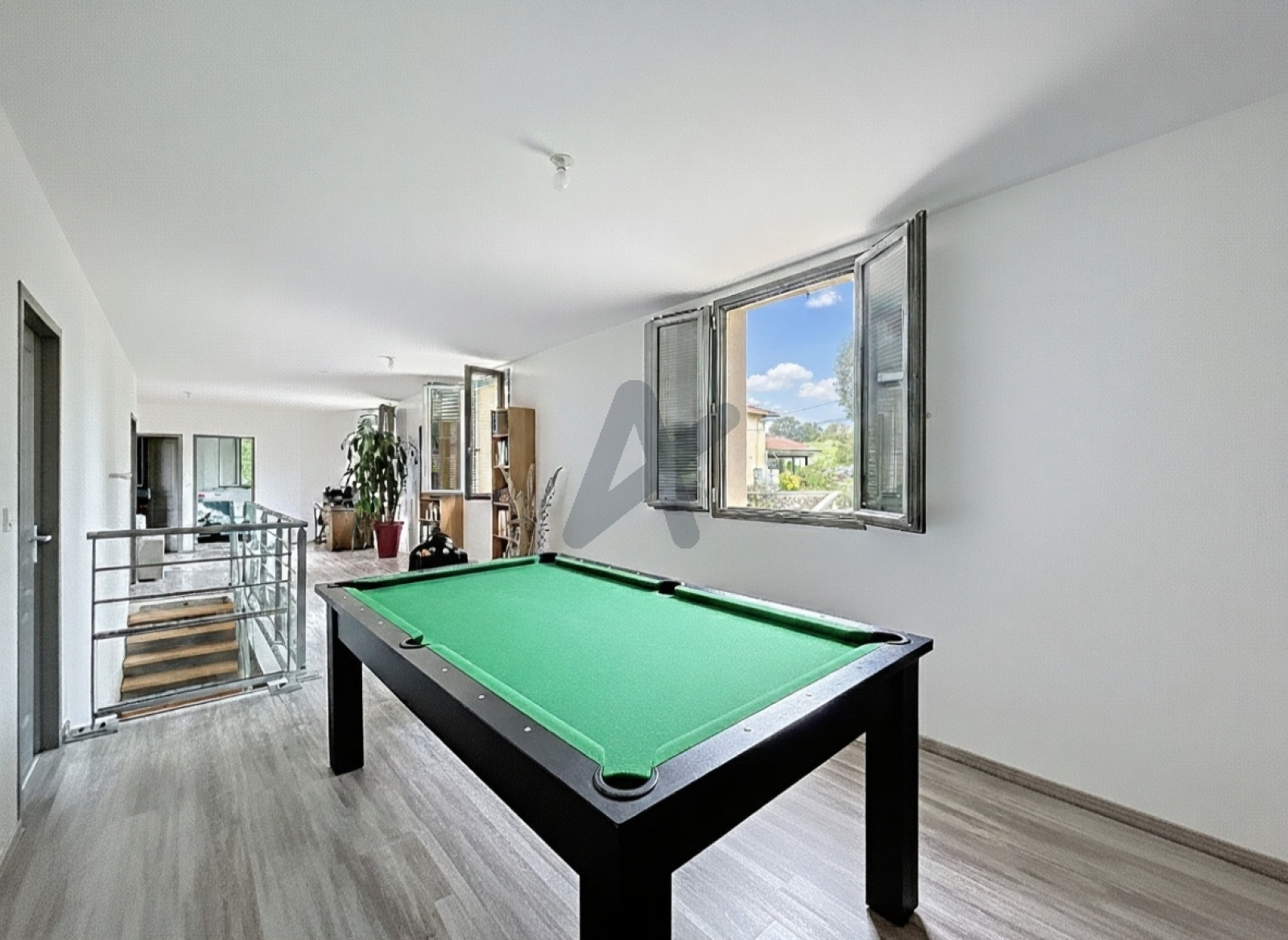 Toujours à l'étage, vous disposerez d'un grand espace mezzanine, 2ème salon et salle de jeux (billard).