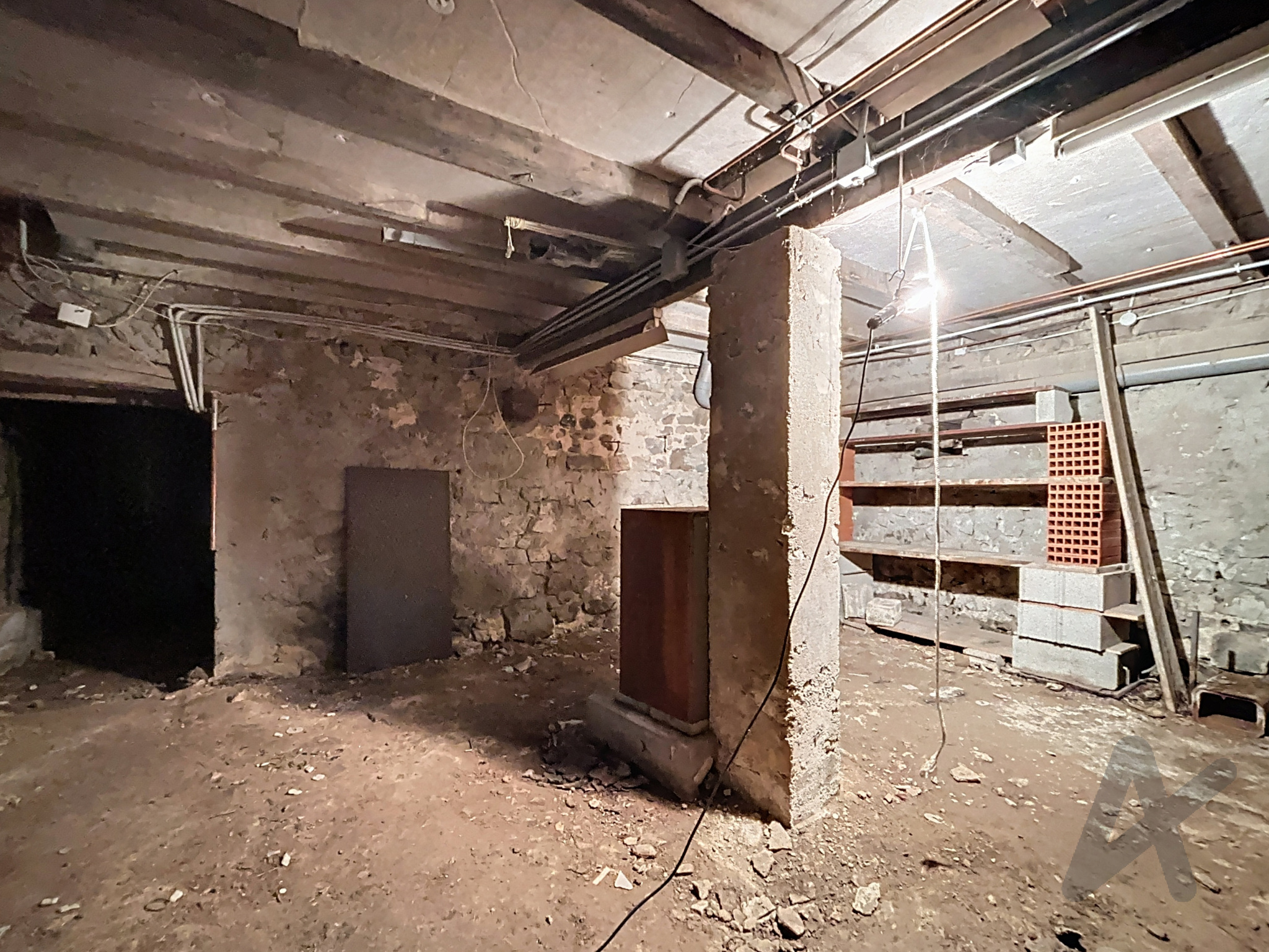 Il y a également un grand garage (36.5m2) et 2 caves (52m2) en sous sol.