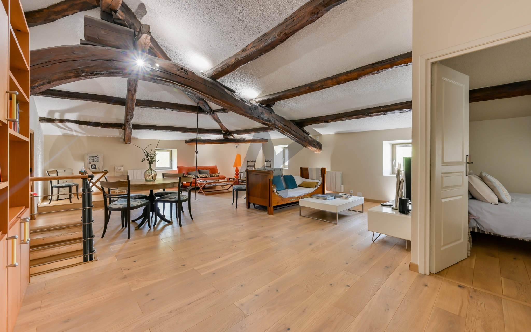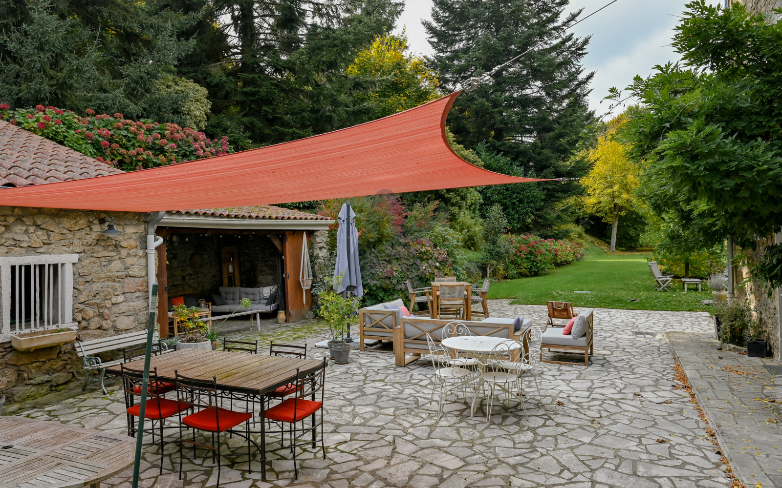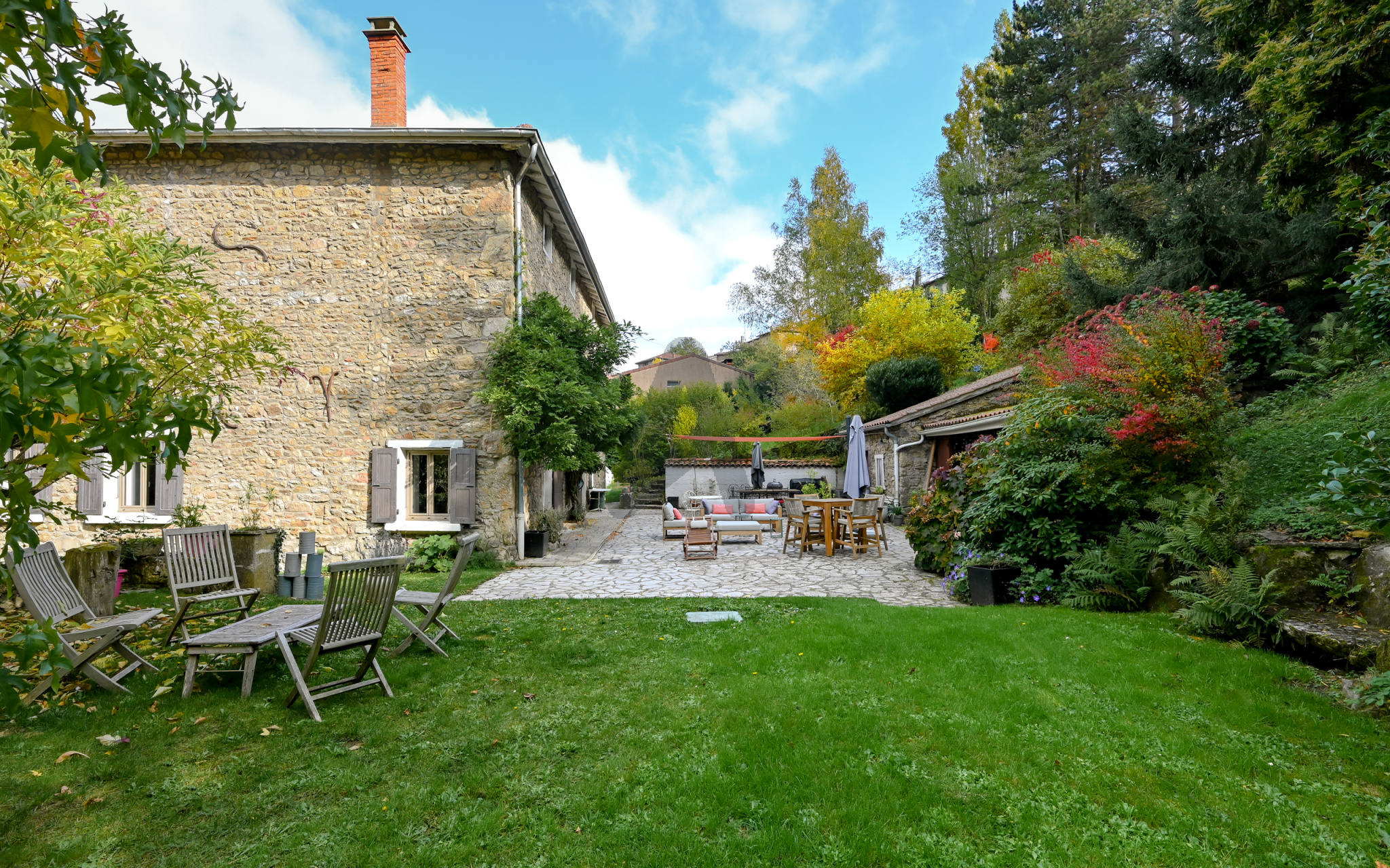 A l'extérieur, terrasse ombragée avec vue. Un atelier/cellier de 50m2. Parking privatisé de 100 m2 devant la propriété. DPE: B . Chaudière à granulés.