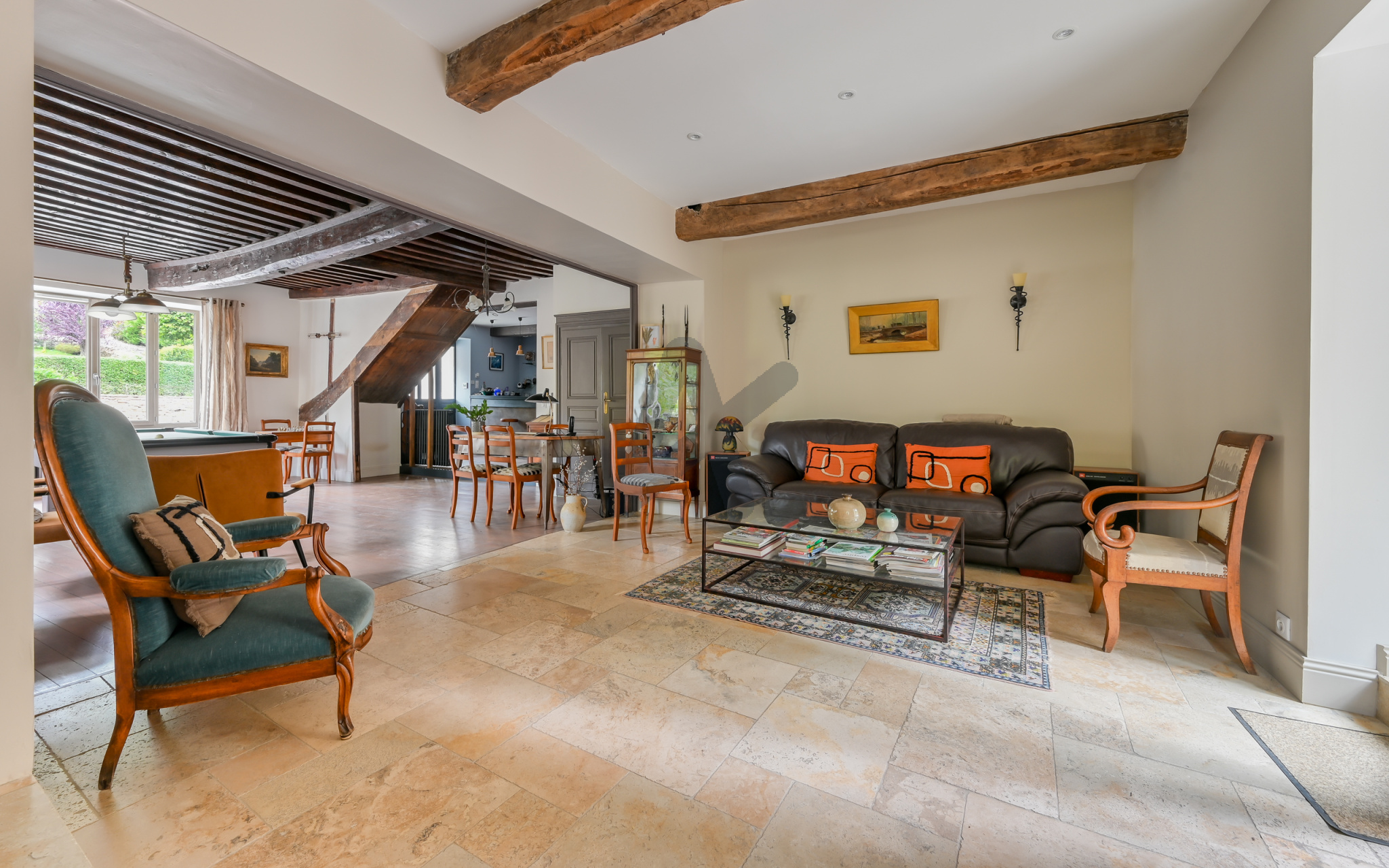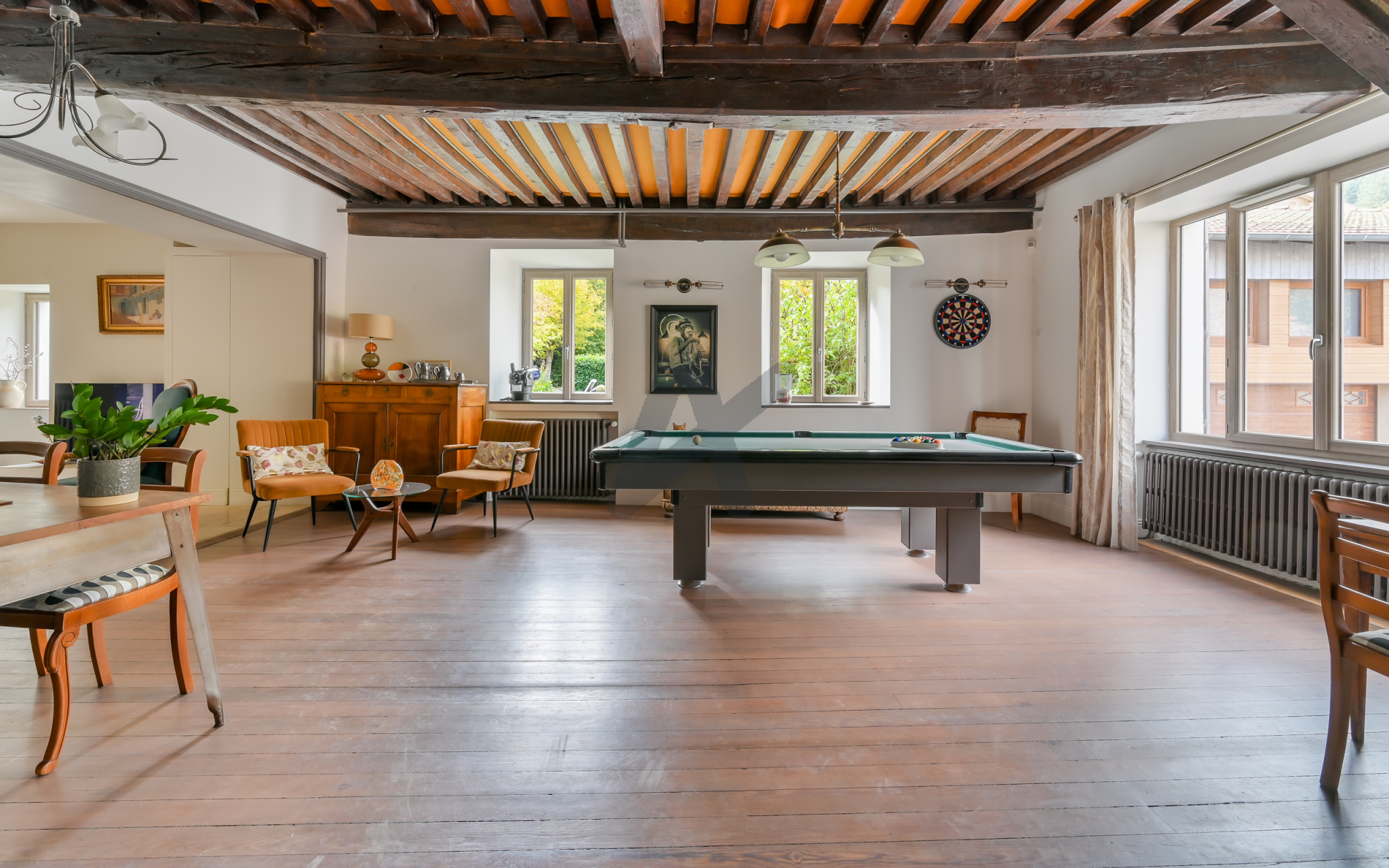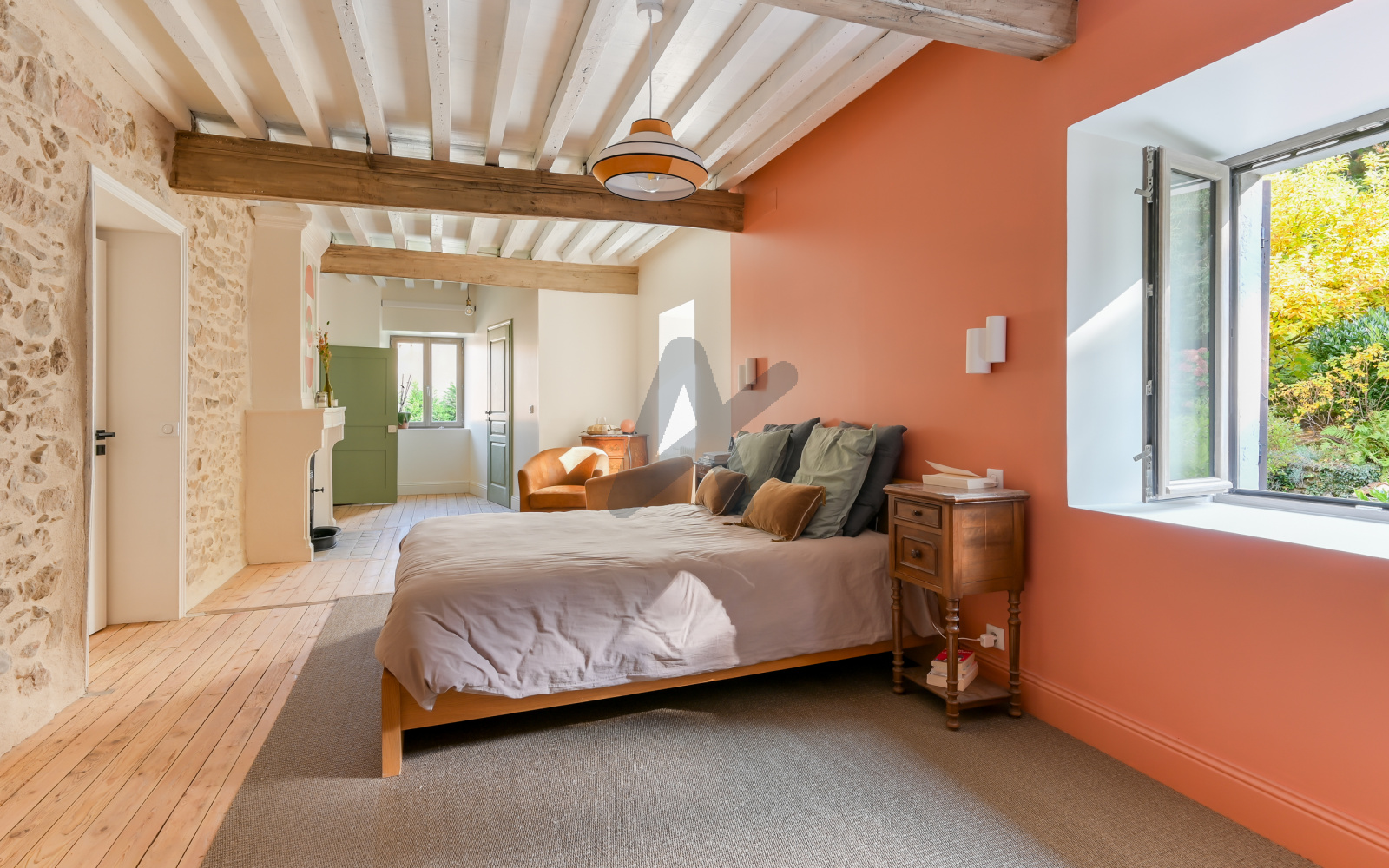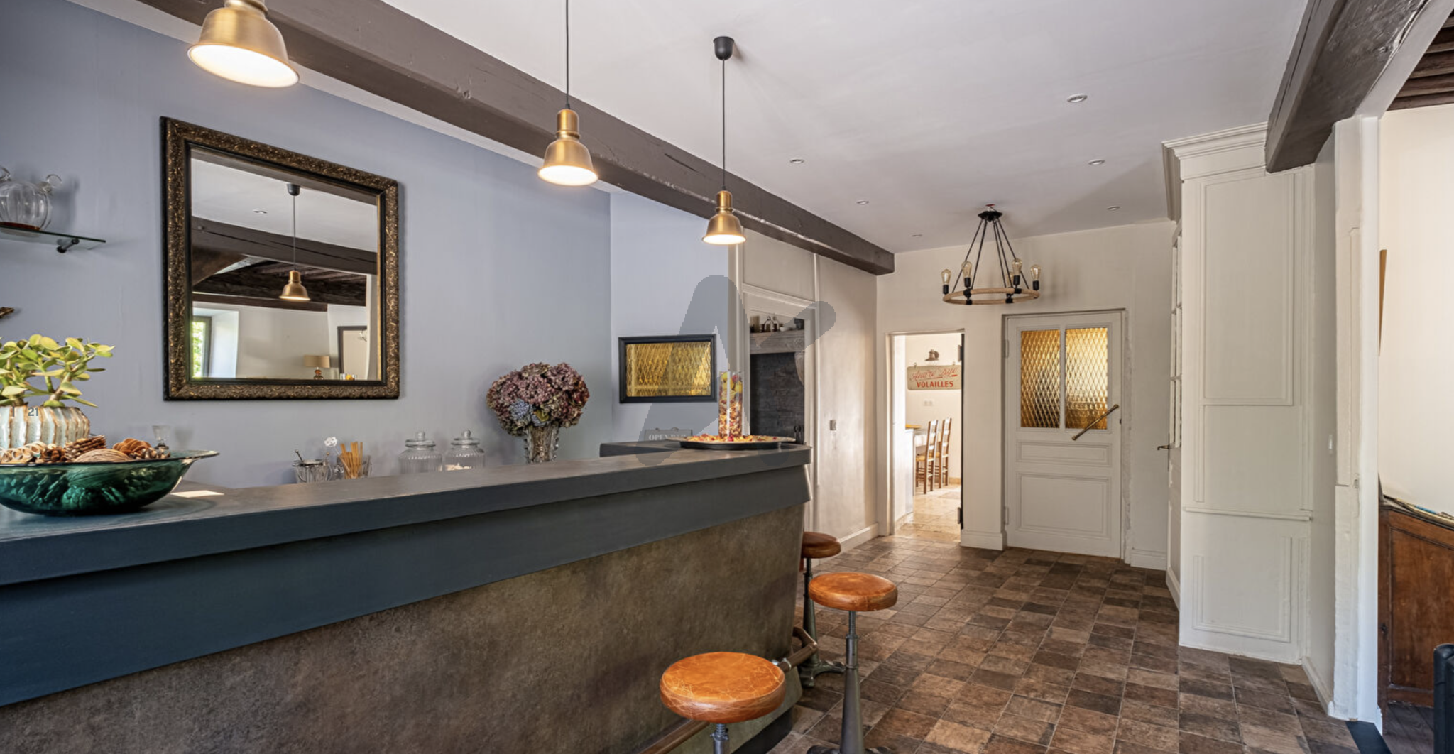 Maison de caractère fin XVIII Siècle d'une surface de 368 m2 entièrement rénovée jardin paysagé de 3758m2 au coeur du village. Cuisine indépendante équipée, buanderie, salle à manger avec cheminée, à l'étage 6 chambres avec salle d'eau ou salle de bains. Cave à vin en sous-sol.