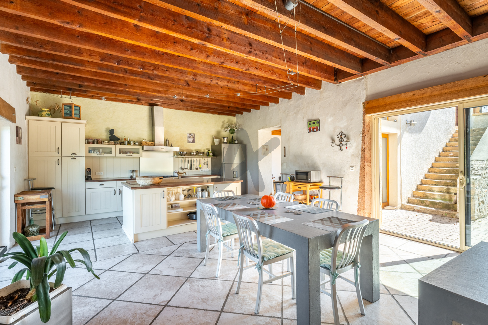 Marcilly-d'Azergues proximité Lissieu, à environ 20kms de Lyon Bellecour et environ 15kms de Villefranche sur Saône, maison ancienne rénovée de 240m², bénéficiant d'un emplacement très agréable et très ensoleillé. La maison est constituée notamment de 4 chambres dont une grande suite parentale (possibilité 5 voire 6 chambres), d'un salon avec cheminée et d'une cuisine ouverte sur salle à manger. Ces pièces de vie donnent de plain-pied sur un beau terrain plat d'environ 1800m² avec piscine et vue sur les monts du Beaujolais. prix 795.000€. Possibilité d'acquérir 2000m² supplémentaires.