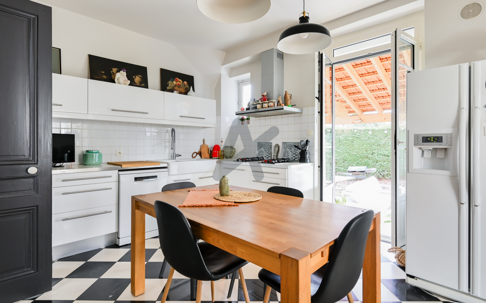 La maison se compose d’une vaste entrée, d’un salon lumineux spacieux avec accès jardin, d’un salon TV ( ou bureau) , d’une belle salle à manger avec de grandes baies vitrées, d’une cuisine équipée communiquant avec la salle à manger et de toilettes. À l’étage : deux grandes chambres en parquet, une belle salle de bains et des toilettes. Au second étage: trois chambres charmantes, une salle de bains et des toilettes. En sous-sol : buanderie et grande cave. La maison de gardien, legerement à l'écart, comprend une pièce de vie avec cuisine ouverte, une chambre en mezzanine, une salle de bains et toilettes. Idéal pour accueillir famille, amis, installer un bureau ou louer à un étudiant. Charme de l’ancien et rénovation de qualité. Coup de coeur asuré !