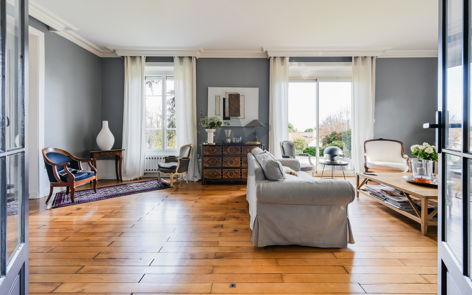 À Charbonnières-les-Bains, en lisière du parc de Lacroix-Laval, découvrez cette magnifique maison bourgeoise rénovée d’environ 215 m² habitables, avec maison de gardien indépendante de 45 m².