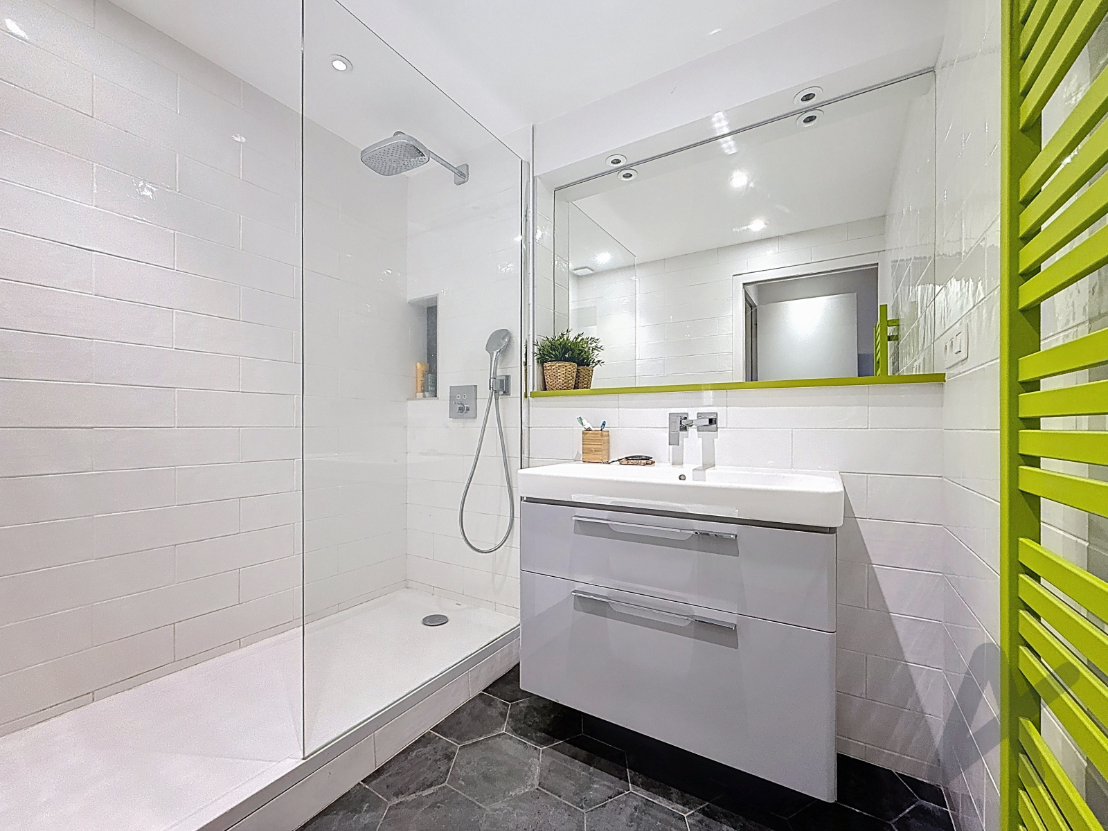Vous bénéficierez de 3 chambres toutes équipées de grands rangements intégrés, d’une salle d’eau avec douche à l’italienne, et de WC séparés.