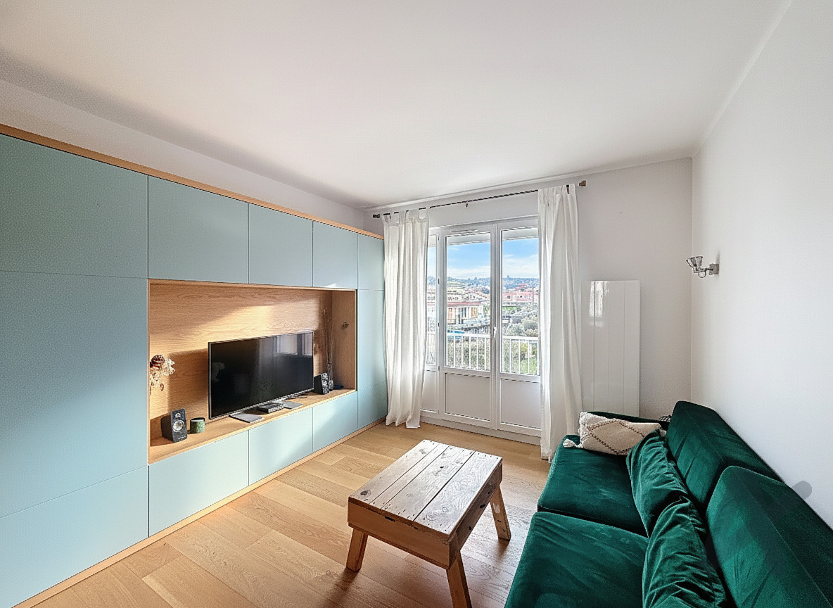 Ce bien d’environ 82 m² se compose d’un beau séjour traversant ouvrant sur un balcon avec une vue dégagée, d’une cuisine moderne parfaitement agencée, ainsi que d’un cellier très pratique.