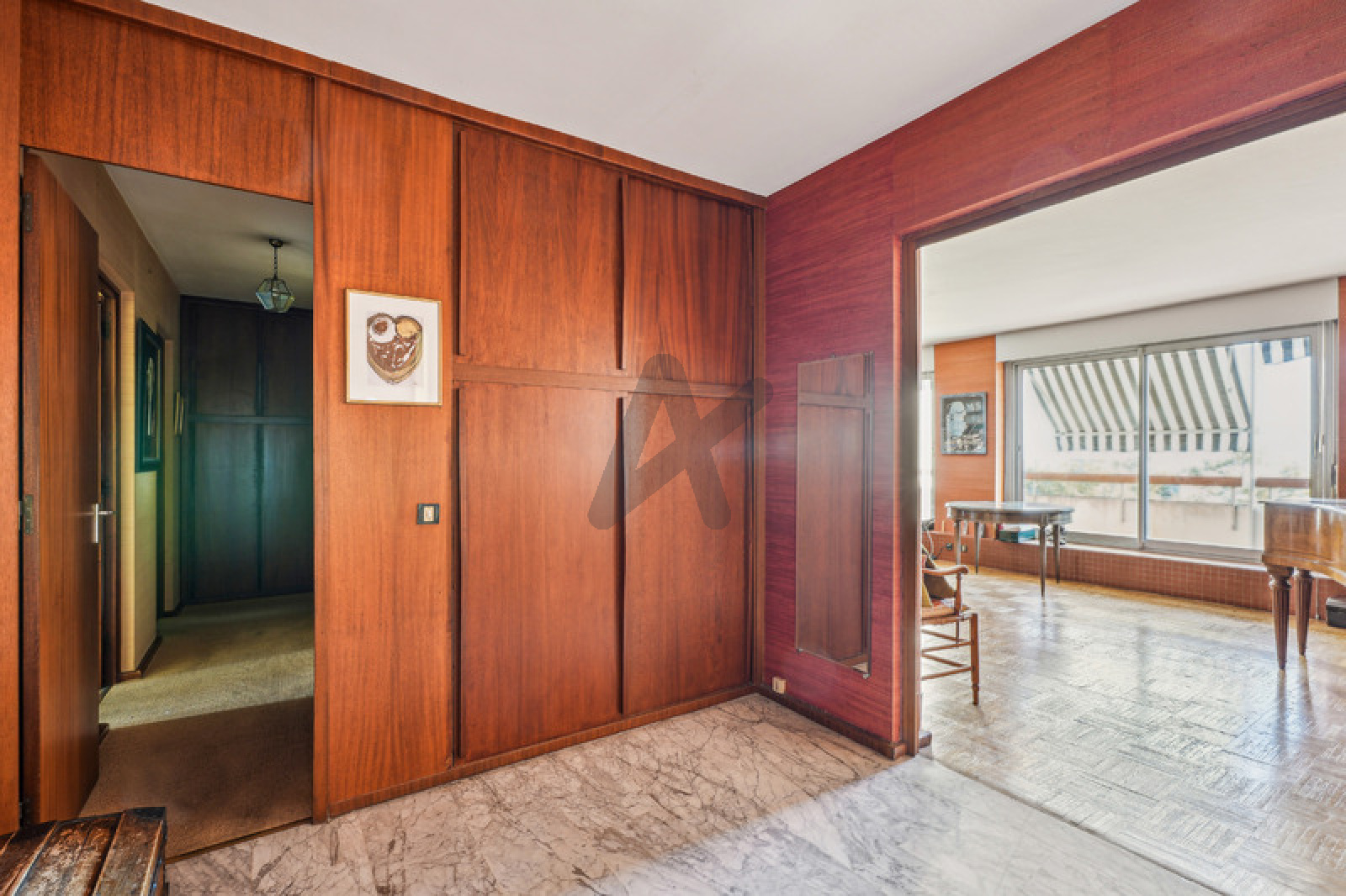 SAINTE-FOY-LÈS-LYON - À 900 m de l'église du village, un appartement de 95,34 m2 carrez pour 117 m2 en superficie totale, au 4ème étage avec ascenseur. L'appartement traversant se compose d'une entrée munie d'un dressing en acajou des années 70, d'un salon munie de 2 baies vitrées, ouvrants sur un balcon à vivre de 14 m2 orienté à l'est, offrant un panorama sur Lyon et la chaîne des Alpes, d'une cuisine séparée donnant sur un blacon de 7 m2 à l'ouest, vue sur le parc, d'un cellier. L'espace nuit comporte un dressing, 2 chambres ouvertes sur le balcon, au calme, d'une salle d'eau et d'un toilette. L'appartement nécessite des travaux de remise au goût du jour. La superficie pondérée avec les terrasses est de 124 m2 soit 3.362 euros/m2. L'immeuble se situe en hauteur au sein d'un parc, bénéficiant d'une vue panoramique sur Lyon et sur le Mont Blanc. Le bus C19 est au pied de l'immeuble. Un cabinet médical en face de la résidence. Tous les commercces du centre du vieux village sont à 900 m. À 10 mn de la gare de Perrache. Un chauffage collectif au gaz au sol. En annexe une cave en étage. Charges de co-propriété et chauffage 212 euros/mois. Nombre de lots 26 principaux. Un garage fermé à vendre en sus au prix de 25.000 € FAI soit 398.000 € FAI pour l'appartement et le garage. Pas de procédure en cours. ARLIM LYON Valérie BRAC DE LA PERRIÈRE Directrice d'agence. Port : 06 48 13 64 48.
