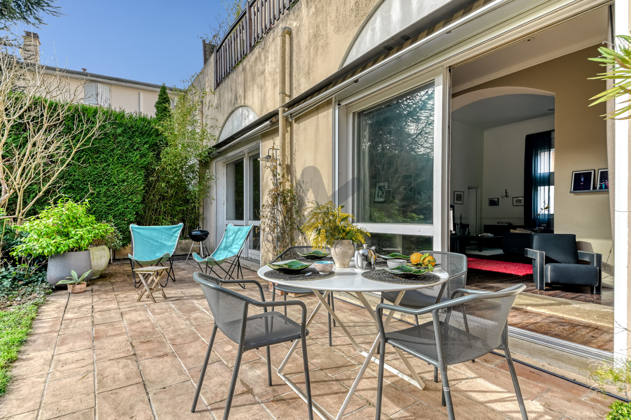 EXCLUSIVITE - Coeur Village: Au sein d’une bâtisse ancienne réhabilitée en 1991, en rez-de-jardin d’une copropriété confidentielle de 7 lots, un appartement en duplex de 160m² Carrez aux volumes généreux et à l’esprit maison. Un vaste hall introduit une élégante pièce de réception avec cheminée en pierre fonctionnelle, prolongée par une grande cuisine équipée ; l’ensemble s’ouvre par de larges baies vitrées sur une terrasse et un jardin paysager privatif d’environ 210 m². Au niveau principal, trois chambres dont une suite parentale avec salle de bains et un dressing en mezzanine, une salle d’eau, une buanderie et des WC. À l’étage, une mezzanine accueille un vaste espace bureau ainsi qu’une chambre supplémentaire. Une cave et un garage à vélos complètent ce bien rare, véritable résidence familiale contemporaine conjuguant caractère, volumes et art de vivre en extérieur. DPE D et D. Quote-part annuelle des charges: 2.480 Euros. Copropriété de 7 lots. Les informations sur les risques auxquels ce bien est exposé sont disponibles sur le site Géorisques : www.georisques.gouv.fr .HCV. ARLIM PRESTIGE LYON - Grégory Weltmann - 06 82 67 80 07.