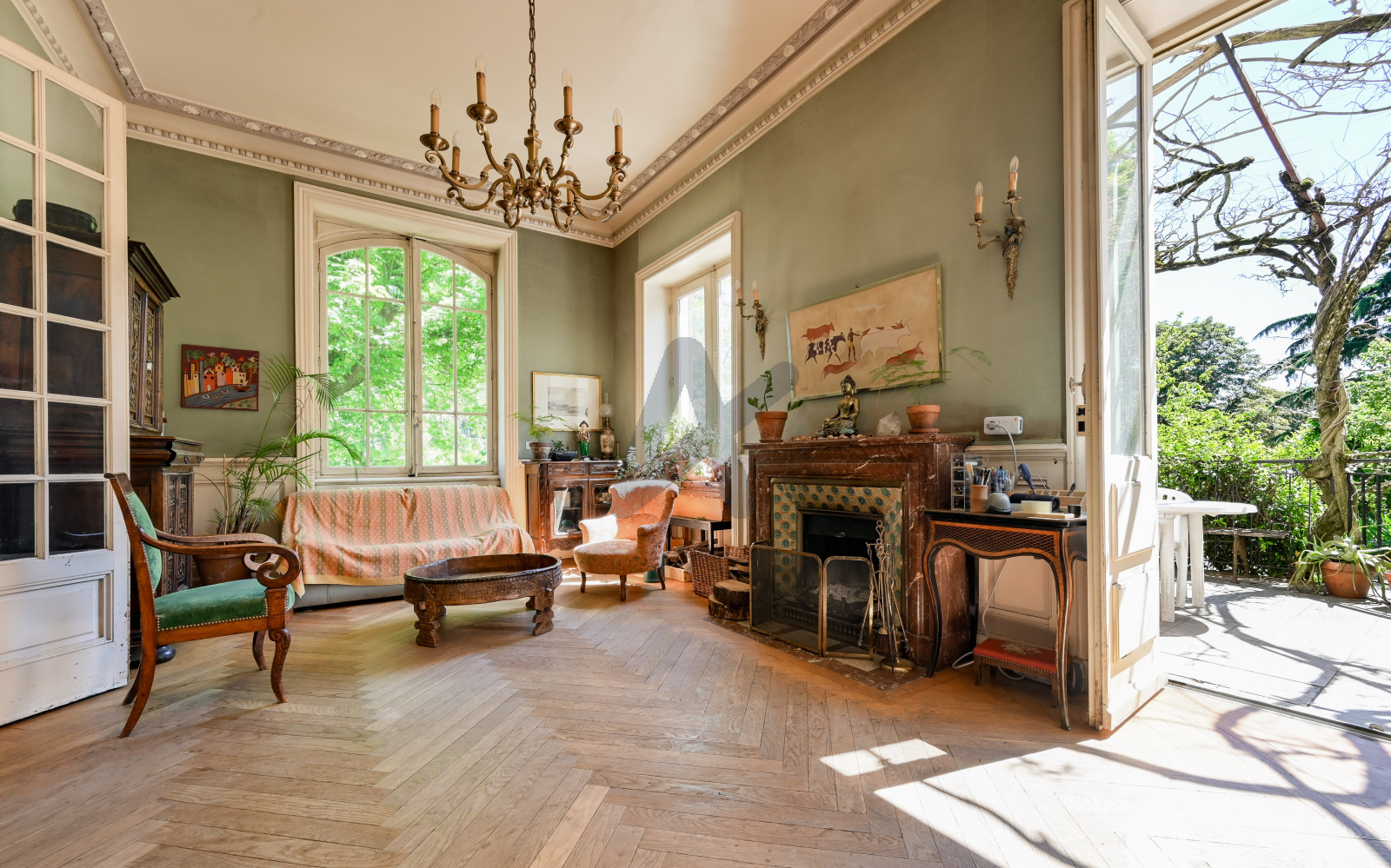 Proche du centre d’Ecully, située dans un quartier résidentiel agréable, maison de maître de belle prestance datant de 1895, d’une surface d’environ 328m2, édifiée sur un terrain arboré de 2000 m2, avec des arbres centenaires protégés et clos de mur. Réaménagés dans les années 90 et 2000, tout en en préservant le cachet, la maison est très lumineuse et agréable à vivre, ayant une triple exposition EST/SUD/OUEST. Elle se compose en Rez-de-jardin, d’une entrée, d’une salle à manger attenante à un grand salon avec cheminée et son accès à sa terrasse fleurie, d’une bibliothèque pouvant accueillir une profession libérale car elle possède une entrée privée, ainsi qu’une cuisine indépendante avec cellier (donnant elle aussi sur la terrasse) et d’une salle d'eau PMR avec toilette. Au niveau supérieur, se trouvent quatre grandes chambres dont une suite parentale complète, une salle de bains et un toilette, à partager avec les trois autres chambres. Au dernier étage, un appartement entièrement rénové, accessible par le grand escalier ou l'ascenseur avec son entrée indépendante mais pouvant être facilement réintégré à l'ensemble. Il comprend, une salle à manger avec cuisine ouverte équipée, 3 belles chambres, une salle d’eau, un toilette séparé et un grenier fermé. En sous-sol, 100 m2 de cave : une cave à vins d’époque sur terre-battue, un atelier, 2 caves individuelles fermées et une grande cave sur sol de béton. En annexe, cette belle demeure offre : un auvent construit en dur abritant 4 places de stationnements protégées et 2 mezzanines de stockage, une maison pour les outils de jardin, une petite serre d'époque, un bassin à poissons et un vaste espace pour un potager. Une partie du terrain est constructible. Des travaux de rafraîchissement et de remise aux normes de l'électricité pour le rdc et le 1er étage sont à prévoir ainsi que le changement d'une partie des huisseries pour passer en double-vitrage. Elle est idéalement située dans le quartier Villeneuve, à 15 min à pieds du centre d’Ecully et 5 minutes du centre commercial carrefour grand ouest. Bien desservie, à 10 minutes en voiture du centre de Lyon, elle est proche des principaux axes routiers (A6, Périphérique TEO), des bus (TCL et scolaires) et des gares (Métro gare de Vaise à 10 minutes en voiture, gare SNCF Part-Dieu à 45 minutes porte-à-porte par le bus C6 qui passe toutes les 10 minutes, dimanche compris). Paysagée avec des arbres centenaires, cette propriété au charme remarquable offre un formidable cadre de vie familiale et peut également s’ouvrir à un projet hôtelier.