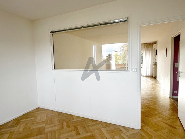 ECULLY : commune prisée pour ses facilités de vie et sa localisation géographique en première couronne de l'ouest Lyonnais. Environnement privilégié, au coeur d'un joli parc arboré, une résidence fermée et sécurisée. L'appartemnt T4 se situe en 3ème et dernier étage, offrant une surface confortable de 91 m2 : Hall avec placard, cuisine équipée et cellier-buanderie attenant. Belle pièce de vie ouvrant sur un balcon côté parc. Dans le prolongerment : un salon bureau pouvant aussi être une troisième chambre mais aussi être intégré au séjour. Espace nuit : deux chambres avec accès à un balcon filant, toilettes avec lave-mains, salle de bain spacieuse. Nombreux placards. Au sol travertin et parquet blond. Store banne sur le salon et climatisation, menuiseries double vitrage.