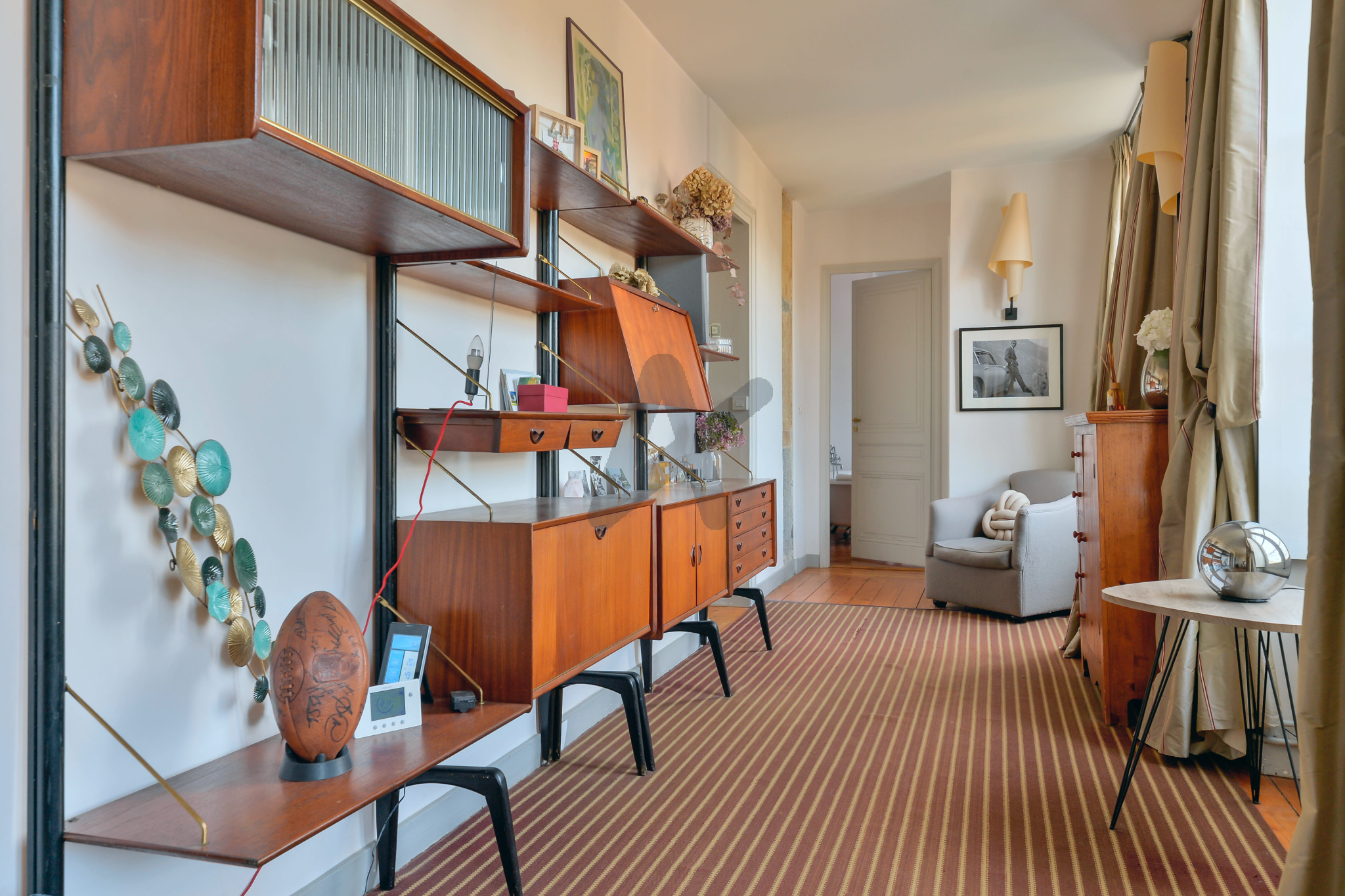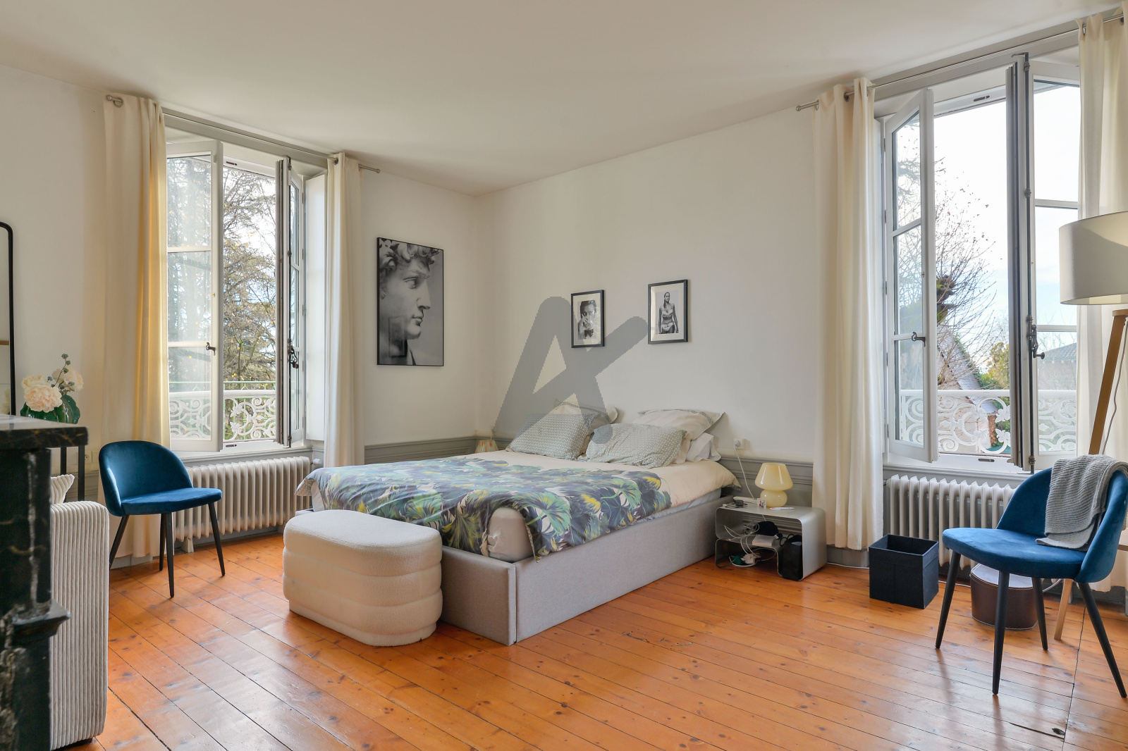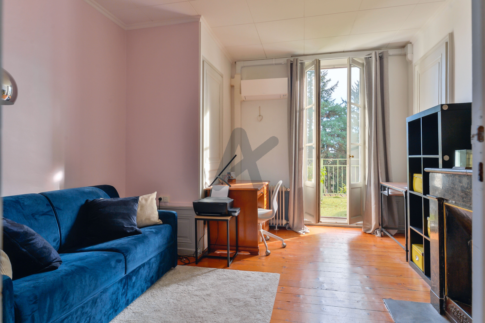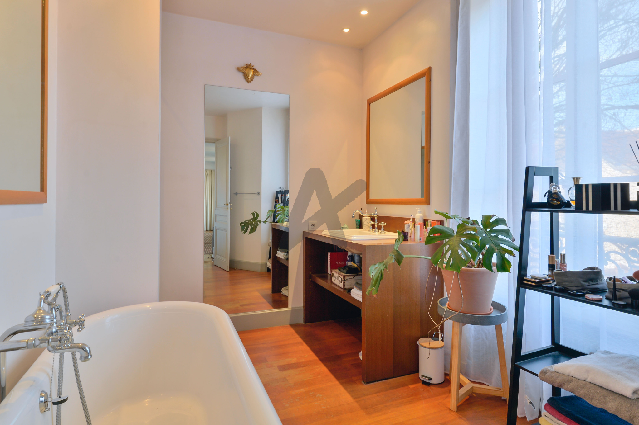 L'appartement au charme indéniable, se compose d'une belle entrée qui dessert une partie jour composée d'un salon avec cheminée et d'une cuisine dinatoire baignée de lumière avec ses grandes fenêtres, d'un espace nuit comprenant 3 chambres et une salle de bains. A cela s'ajoute un bureau / chambre d'amis et une petite salle de douche. L'appartement est entièrement climatisé (2023).