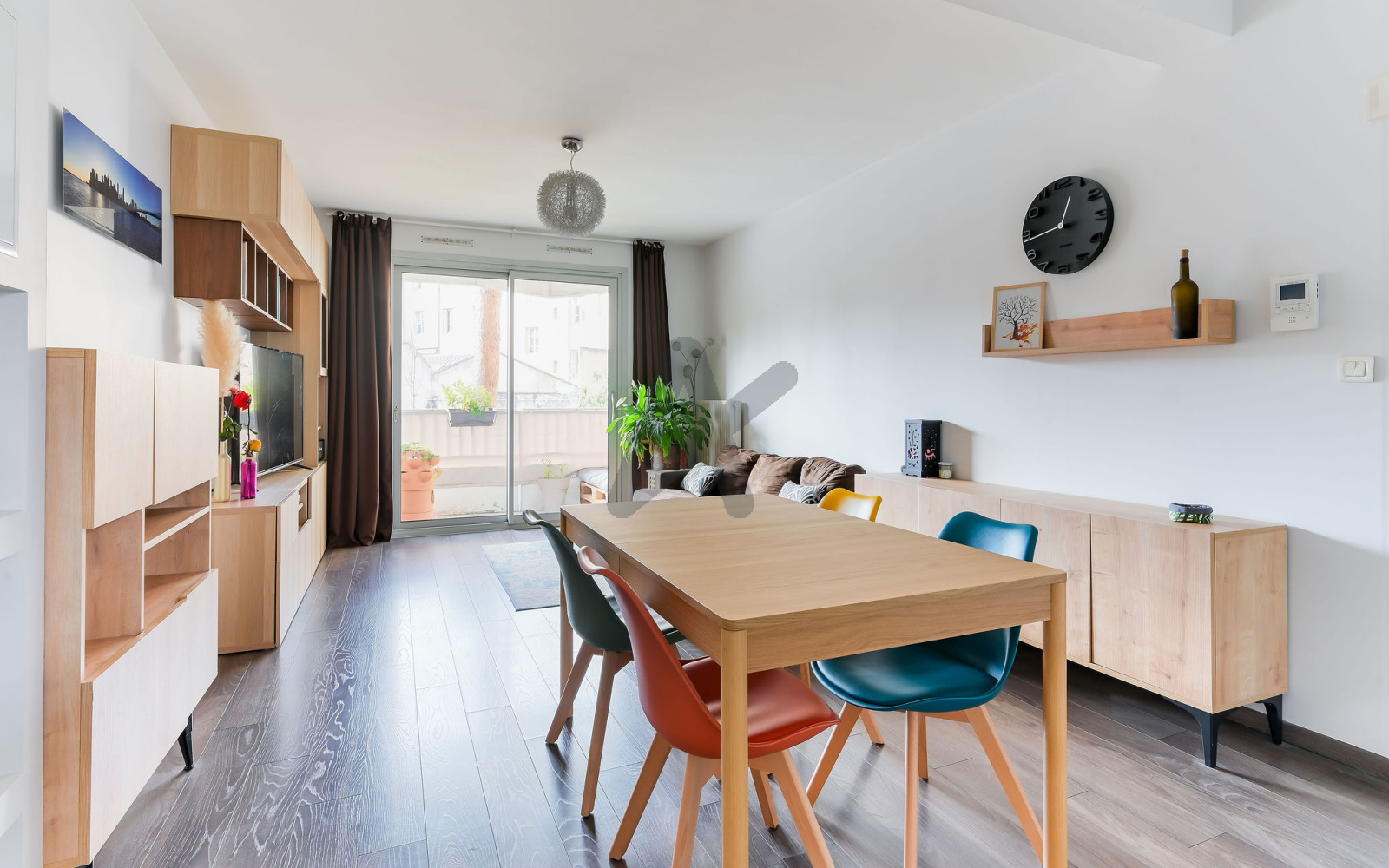 TASSIN LA DEMI LUNE CENTRE ,à proximité de tous les les accès et commodités, dans immeuble de standing avec ascenseur, venez découvrir ce joli appartement traversant exposé Est/Ouest de 64 m2. Dès l'entrée, vous serez séduits par une pièce de vie confortable avec une belle cuisine équipée contemporaine ouvrant sur une terrasse filante de 9 m2. Un couloir dessert la partie nuit avec 2 belles chambres et une salle de bain avec WC indépendants. Copropriété bien entretenue dans un environnement calme. L'appartement bénéficie d'un chauffage collectif inclus dans les charges. Un garage fermé en sous sol ainsi qu'une cave viennent compléter ce bien. DPE D, copropriété de 45 lots, montant de charges annuelles 4186 €, pas de procédure en cours. Les honoraires sont à la charge du vendeur . A découvrir en EXCLUSIVITE chez Arlim Prestige Lafayette. contact Riva MALCI 06 01 01 38 61