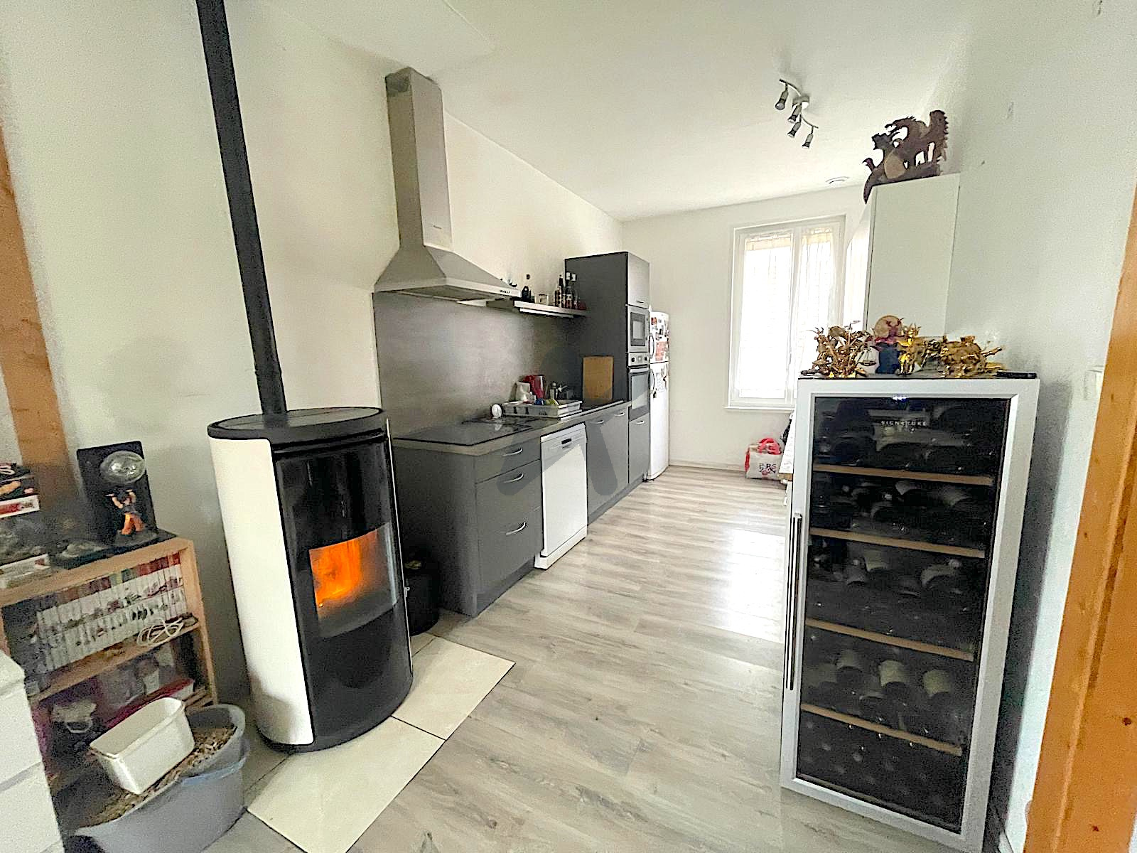 LOUHANS HYPER CENTRE. Belle maison de 97m2 hab environ avec un énorme potentiel. Au-rez-chaussée, nous trouvons une cuisine d’été, une cave avec wc et un garage de 40m² isolé. Nous découvrons au premier étage un hall qui dessert un séjour/salle à manger avec une cuisine ouverte où nous pouvons apprécier la chaleur d’un poêle à granules. Sur ce niveau, deux chambres de 14 m2 chacune, une salle d’eau avec WC. Au deuxième niveau, deux pièces (deux chambres complémentaires possbiles) en parties aménagées de 20 et 40 m2 hab environ (isolation et vélux effectués mais travaux de finition pour les sols et les placos à prévoir). Le tout sur un beau terrain plat d’environ 732m en partie constructible avec puits et fosse septique. Les menuiseries ont été changées en PVC, double vitrage, volets électriques et moustiquaire. Maison vendue vide ou occupée (loyer 600 euros/mois. Classe energie E , classe Climat B. Energie finale 258Kwh/m2/an. Estimation des couts annuels d’énergie du logement entre 1300 et 1810 euros. Honoraires charge vendeur. Les informations sur les risques auxquels ce bien est exposé sont disponibles sur le site Géorisques : www.georisques.gouv.fr. Agence ARLIM Prestige Ain Côtière Sabrina POINTET 06.59.09.05.19 ou 04.78.06.06.69