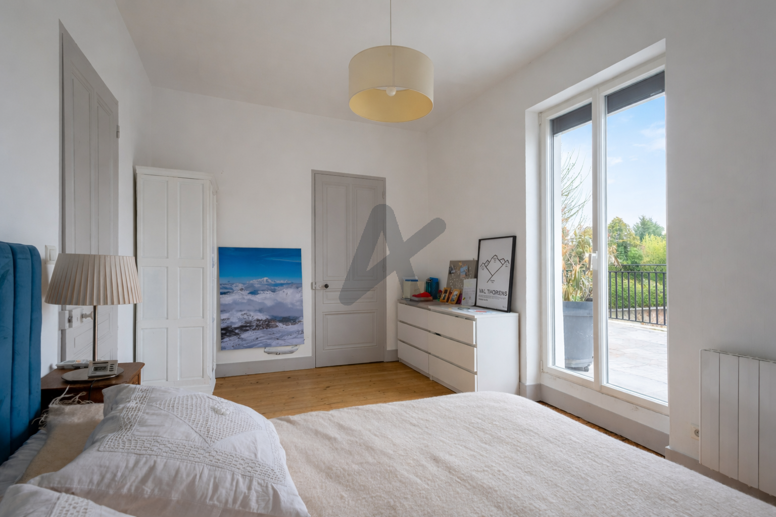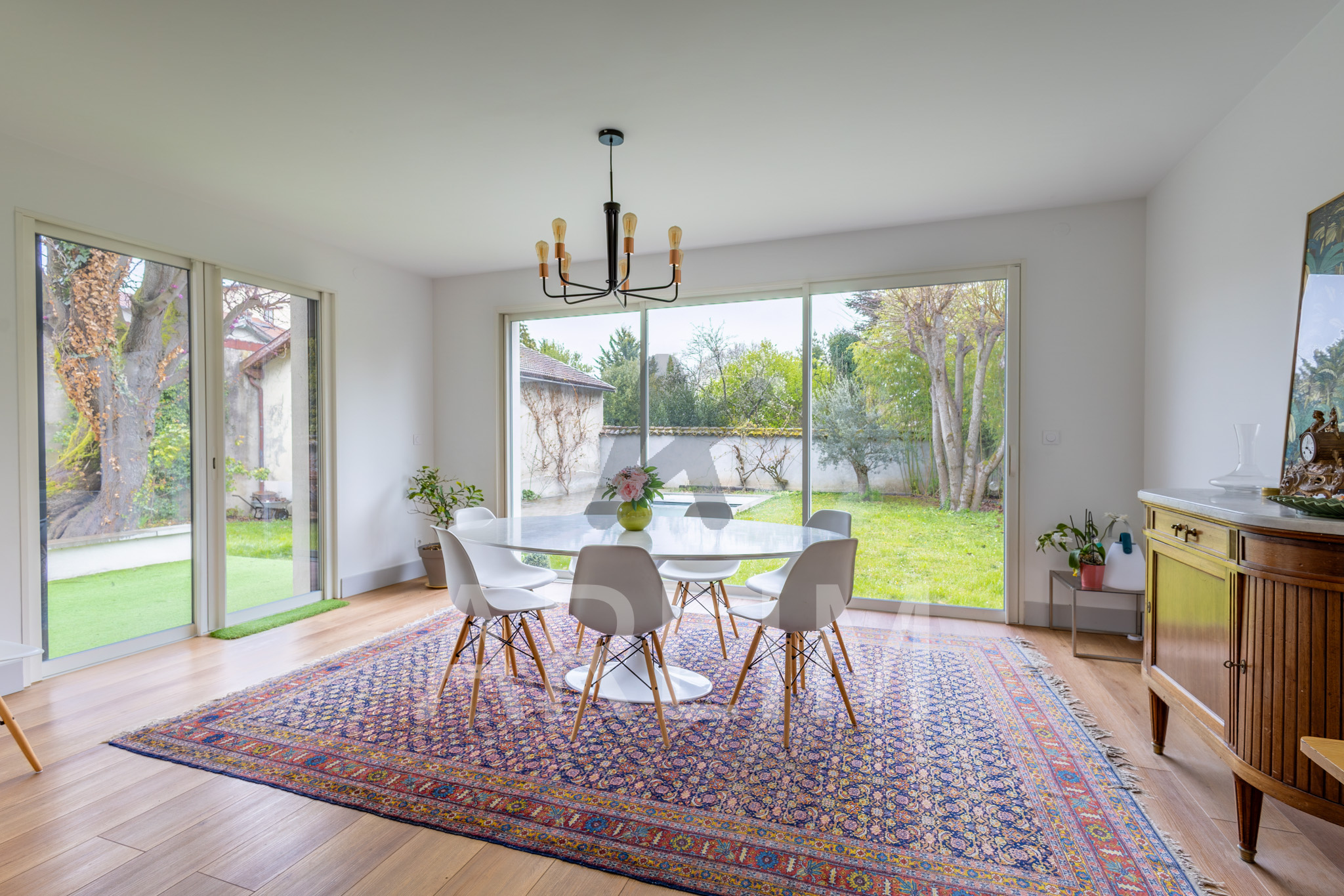 RARE. Au coeur du village de Montluel. Proche de toutes commodités (commerces, écoles, gare, accès autoroute). Venez découvrir cette magnifique Maison Bourgeoise de 1930, entièrement rénovée, dôtée de belles prestations, d'une surface d'environ 165m2 habitables sur un beau terrain plat et paysagé avec piscine et dépendances de 658m2 environ. Vous serez charmés par sa magnifique pièce de vie baignée de lumière (triple exposition), composée d'une cuisine entièrement équipée avec îlot central en céramique et noyer, ouverte sur la salle à manger et le jardin et d'un salon avec cheminée (5ème chambre possible) donnant sur le jardin et la terrasse. A ce niveau se trouvent un wc séparé et un coin bureau avec placard (salle d'eau possible). Au premier niveau : deux chambres avec placard (15 et 22m2) dont une ouverte sur une belle terrasse de 20m2 exposée au Sud sur le jardin, une salle d'eau avec douche à l'italienne et un wc séparé. Au dernier étage : un dégagement, deux belles chambres, une salle de bains avec baignoire et wc, un grenier. De beaux volumes. Tout le cachet de l'ancien a été conservé. De très beaux matériaux : parquets, moulures, cheminée, carreaux de ciment, tomettes, cuisine Haut Gamme sur mesure Bernollin. Le sous-sol possède trois belles pièces dont une cave à vin et une salle de jeux. A l'extérieur : une piscine de 9X3 chauffée avec nage à contre courant et deux garages/ remise, d'une surface totale de 67m2 environ. Chauffage gaz (chaudière à condensation neuve), toiture refaite, clim reversible, huisseries thermiques et phoniques. Bien unique au centre du village, à visiter rapidement. Classe energie C, classe Climat C, Energie finale 144Kwh/m2/an. Estimation des couts annuels d’énergie du logement entre 2620 et 3610 euros. Honoraires charge vendeur. Les informations sur les risques auxquels ce bien est exposé sont disponibles sur le site Géorisques : www.georisques.gouv.fr. Agence ARLIM Prestige Ain Côtière Sandrine OLIVIER 04.78.06.06.69 ou 06.15.13.81.54