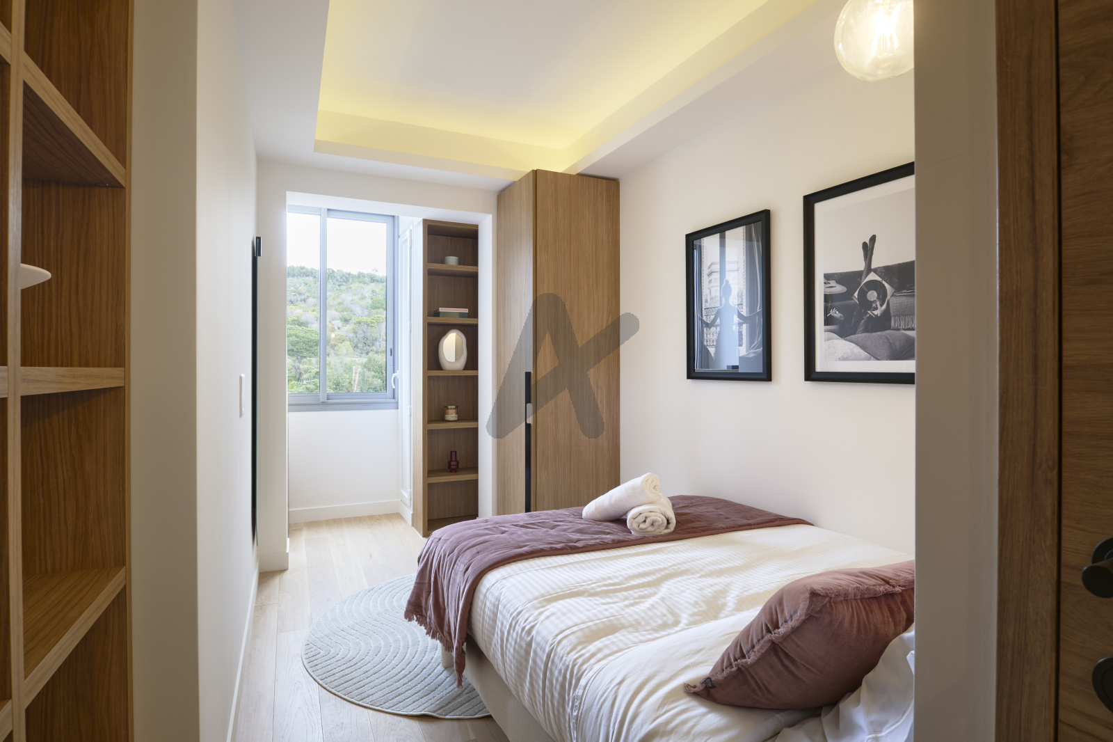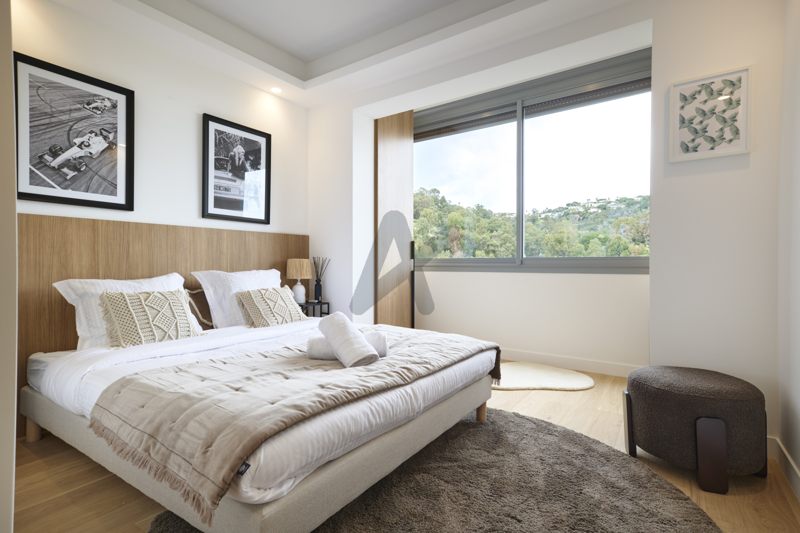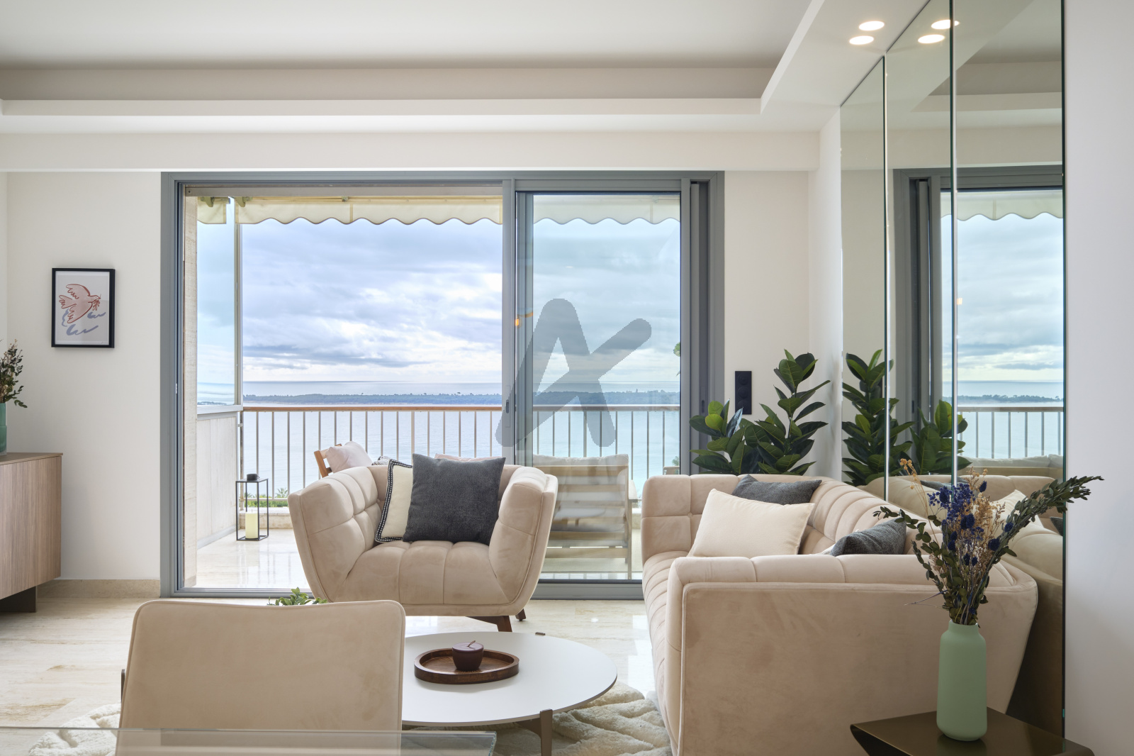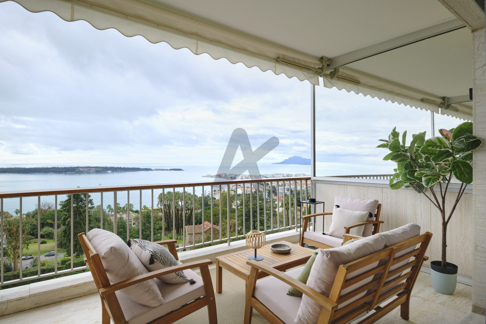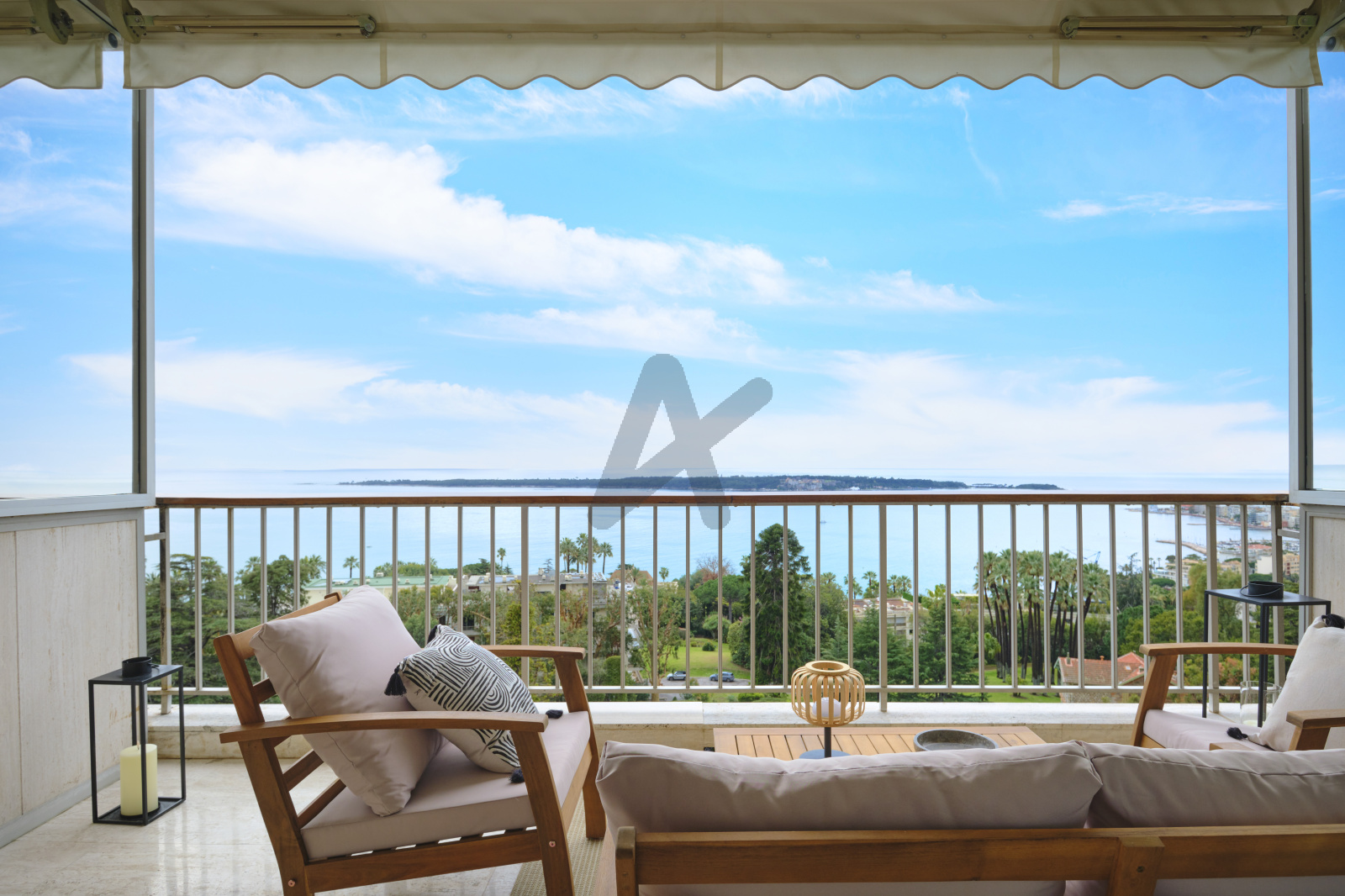 Au sein d'une des plus prisées résidences de Cannes de grand standing, avec piscine, tennis et practice de golf, en étage élevé, 3P composé d'un salon donnant sur la terrasse avec une vue extraordinaire sur la mer et les îles de Lérins, 2 chambres en suite. Une cave complète ce bien d'exception
