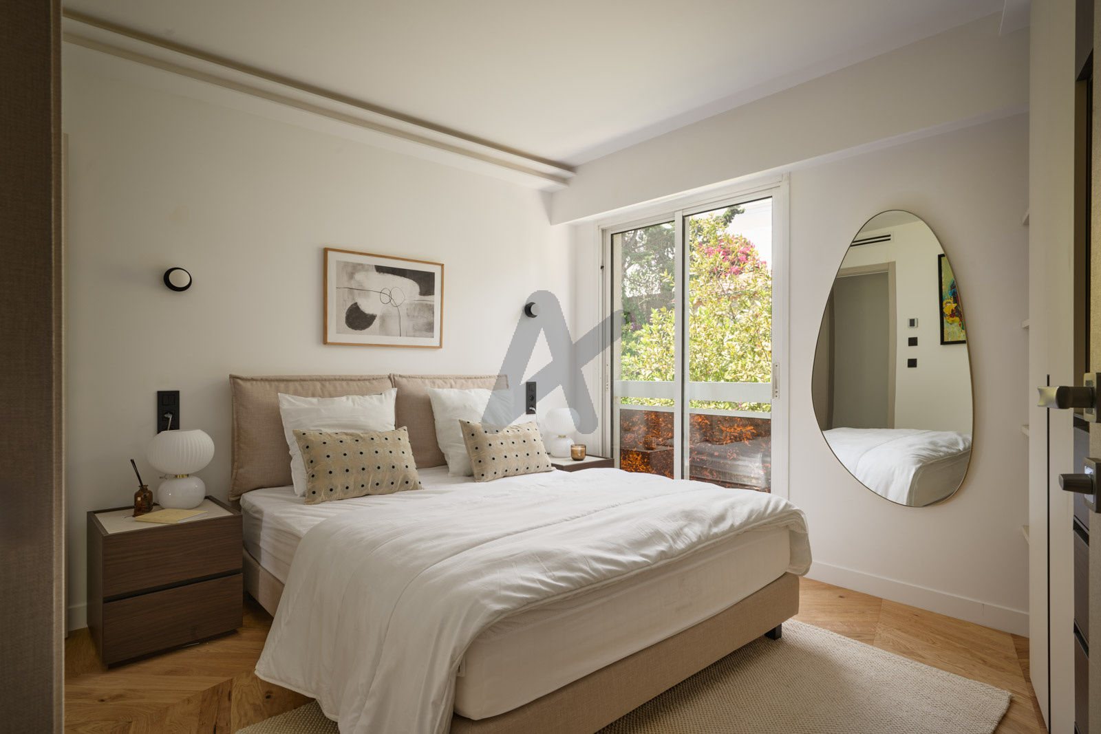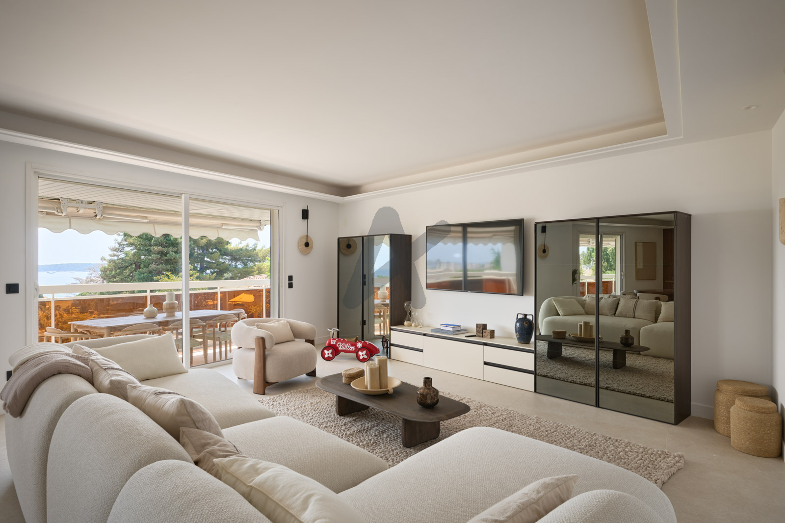 Dans une résidence très prisée avec piscine, dans le secteur de la Basse-Californie, magnifique appartement en dernier étage de 135m² offrant une vue imprenable sur la mer et la baie de Cannes.