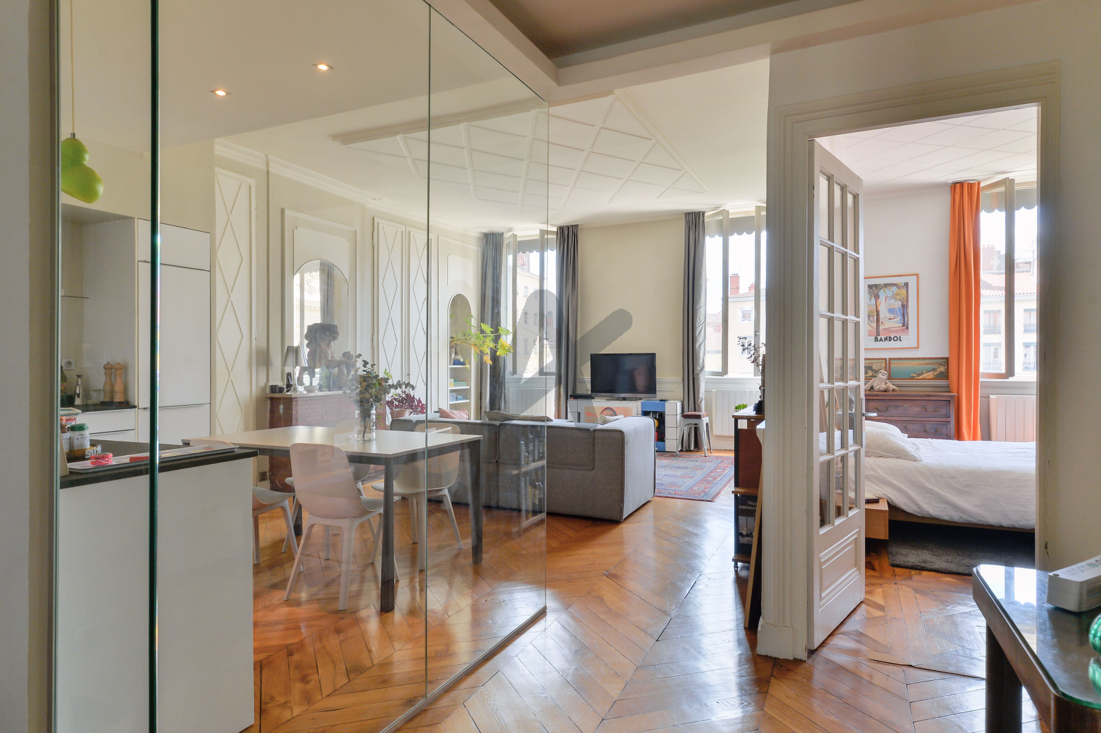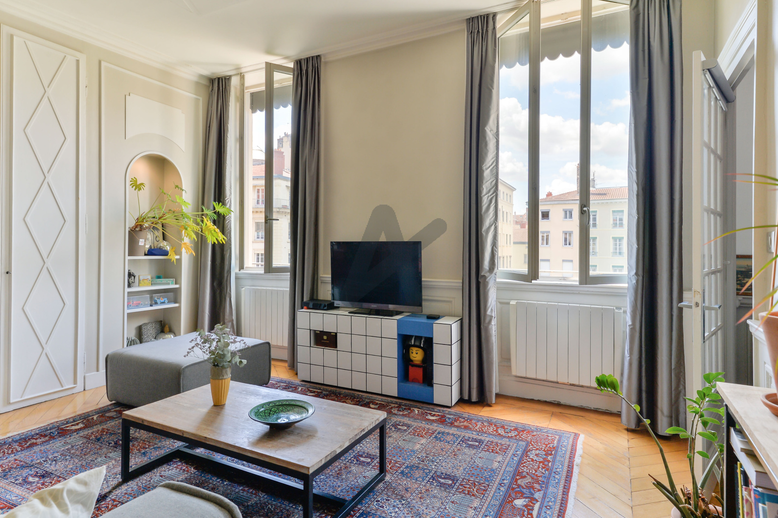 Co-Exclusivité - Lyon 2ème - Rare - Place des Célestins - Côté sud - Situé au 4ème étage, sans ascenseur, découvrez ce très bel appartement de 100m2. Il s'organise autour d'une entrée avec dressing qui dessert une pièce de vie avec deux grandes fenêtres exposées Sud qui offrent une très belle vue sur la place et le célèbre Théatre des Célestins. La pièce de vie se compose d'une cuisine aménagée et équipée et d'un espace salon, le charme de l'ancien a été conservé : belle hauteur sous plafond, moulures, parquet chevron, ...L'entrée déssert également 2 chambres avec chacune leur salle de bain ainsi qu'un espace buanderie. Bénéficiez de tous les avantage du centre-ville, commerces, marché du quai St Antoine, restaurants, cinéma.. tout en profitant du calme de la place.