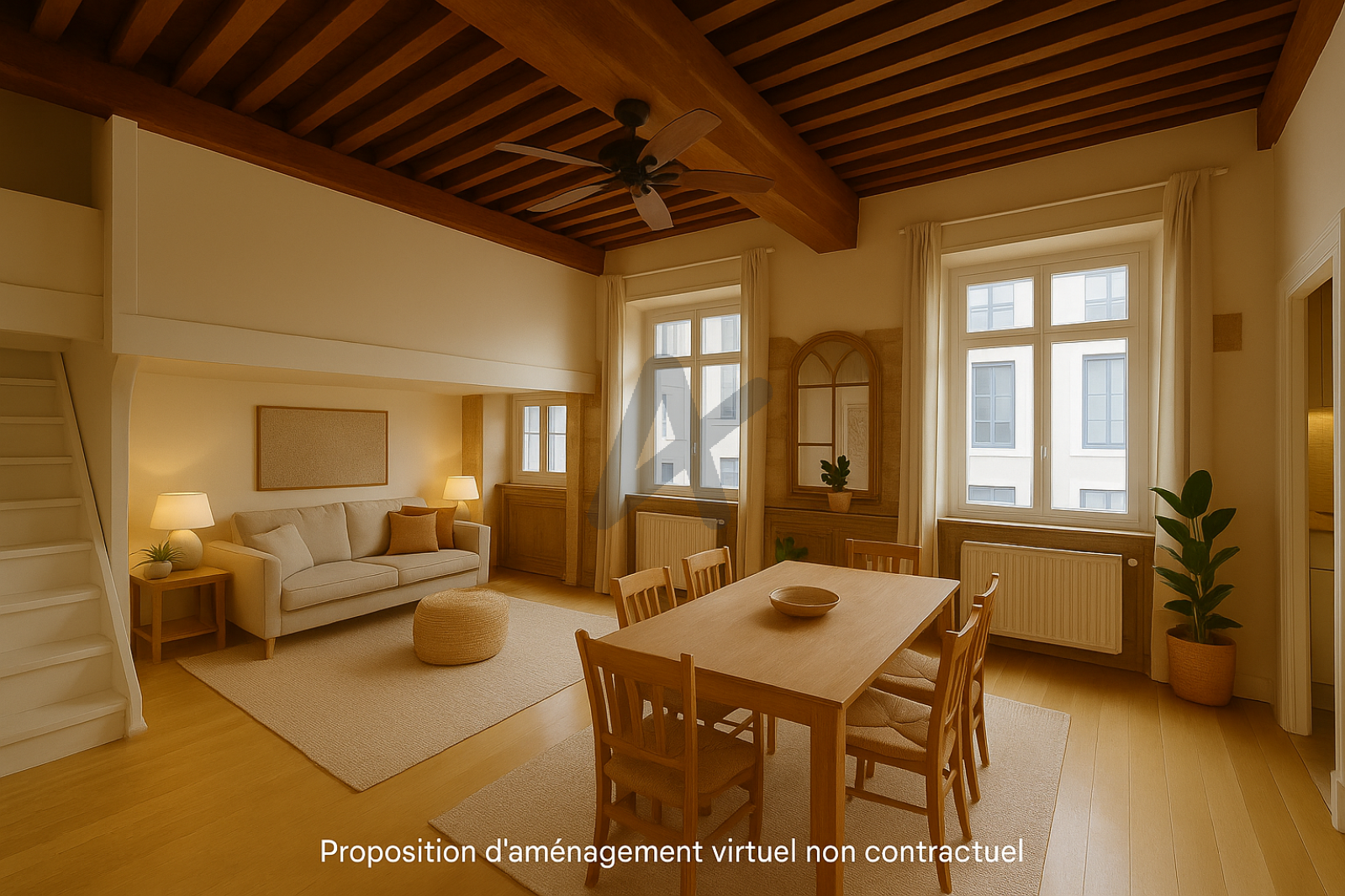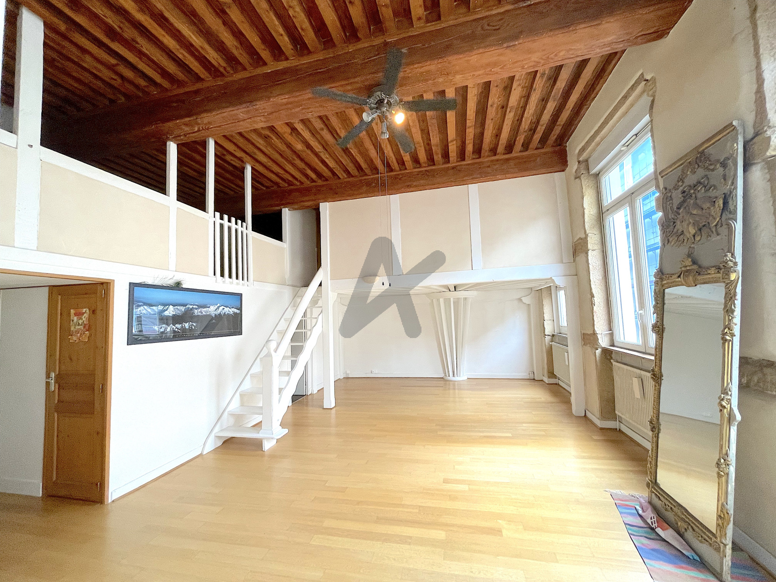RARE Sur le plateau de la Croix-Rousse, à quelques mètres de la Place des Tapis, proche de toutes commodités. Bel appartement de type Canuts, au deuxième étage sans ascenseur, d'une surface de 111m2 au sol dont 65m2 carrez. Vous serez charmés par la luminosité, le charme et le volume de sa pièce de vie de presque 33m2 avec poutres et pierres apparentes. La cuisine équipée est semie ouverte. une salle d'eau équipée, toute neuve avec douche à l'italienne et wc vous attend. Un grand dressing, un second placard et un wc séparé complètent ce premier niveau. A l'étage 1m75 environ : deux chambres et un confortable espace bureau/troisième chambre.Possibilité de créer une chambre supplémentaire au niveau du salon. Une cave. Un local à vélo sur l'immeuble. 29 lots principaux. Quote part de charges annuelles 875 euros avec le fond travaux. Pas de procédure en cours. Classe énergie C, classe climat C. Energie finale 134kwh/m2/an Estimation des couts annuels d’énergie du logement pour un usage standard entre 900 et 1260 euros.Honoraires charge Vendeur. Les informations sur les risques auxquels ce bien est exposé sont disponibles sur le site Géorisque www.georisques.gouv.fr. Agence ARLIM PRESTIGE Croix-Rousse/Caluire Sandrine OLIVIER 06.15.13.81.54 ou 04.72.45.55.43
