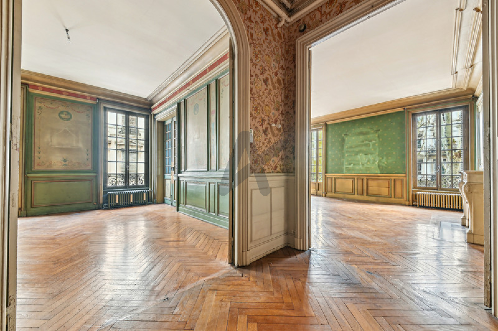 EXCLUSIVITÉ Arlim Prestige Saxe.Dans un immeuble ancien de belle facture aux parties communes bien entretenues, un appartement familial à rénover de 152m2 situé au deuxième étage avec ascenseur. il est composé d'une entrée, d'un dégagement distribuant un majestueux séjour d'angle de 45m2 bénéficiant d'une double exposition et ouvert sur deux balcons, d'une pièce de réception avec un troisième balcon filant, d'un espace nuit constitué de trois chambres, d'une cuisine fermée, d'une salle de bain ainsi que d'un coin lavabo et un toilette séparé. La hauteur sous plafond, le volume des pièces de vie, les boiseries, moulures, cheminées, parquets accompagnés d'un réaménagement éclairé sauront faire rejaillir tout le prestige d'un appartement d'exception. Une cave et un grenier complètent ce bien. DPE: E. Copropriété de 16 lots. Quote part annuelle: 2880 Euros. Pas de procédure en cours. HCA: 4%. Arlim Prestige Saxe. Grégory Weltmann: 06 82 67 80 07