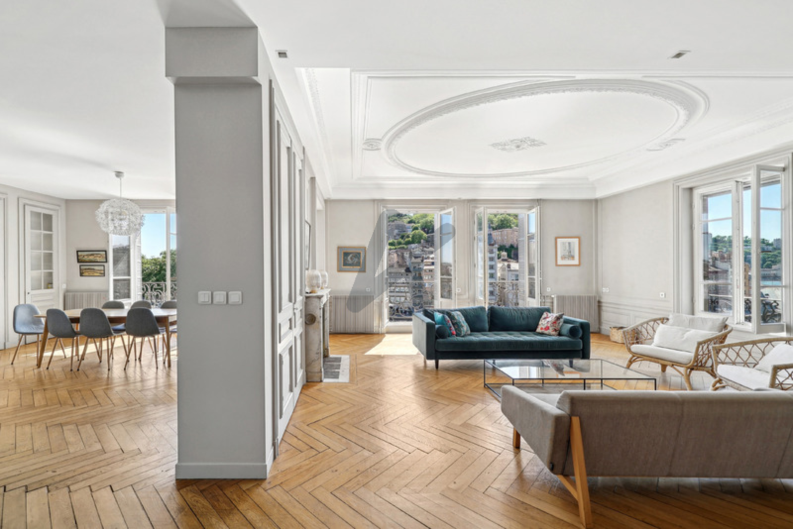 Quai Saint Vincent. Au 4 eme étage avec ascenseur d’un immeuble 1900 de belle facture aux parties communes fraîchement rénovées, appartement d’exception bien agencé et optimisé de 170,84 m2 environ, avec une vue imprenable sur la Saône et Fourvière. Composé d’une pièce de vie d’angle aux volumes généreux, baignée de lumière et ouverte sur 2 balcons, d’une cuisine ouverte aménagée et équipée, de 4 chambres, dont une chambre parents sur cour, avec dressing et salle d’eau, d’une salle de bains supplémentaire et d’une buanderie. Cet appartement familial spacieux et élégant allie charme de l’ancien et le confort contemporain. Local vélos sécurisé. Parking Saint Antoine à proximité.Copropriété de 8 lots.Quote-part annuelle: 2380€. Pas de procédure en cours. ARLIM PRESTIGE Bénédicte Adrian 06 63 21 42 55