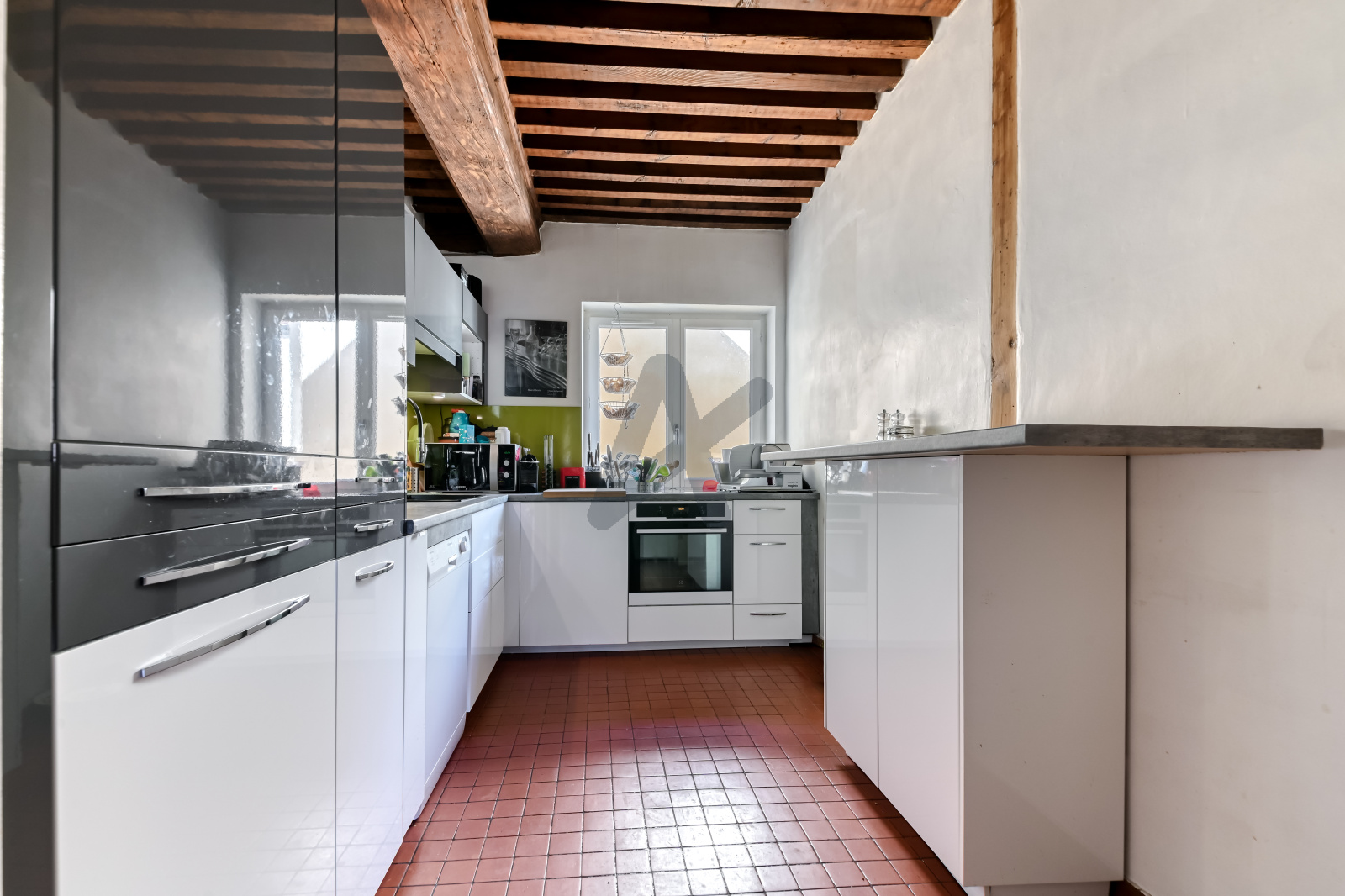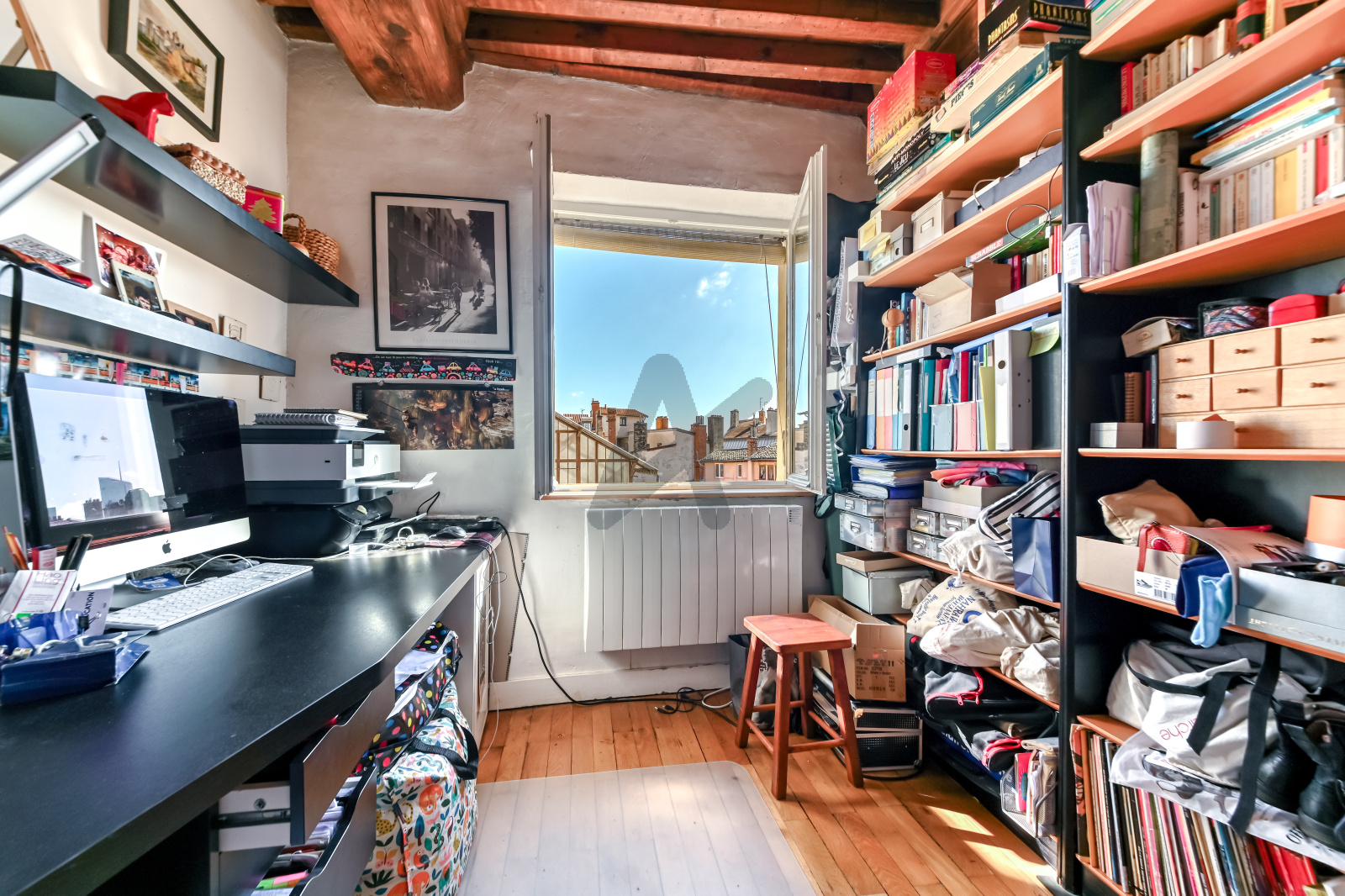 Cet appartement "Canuts" traversant Est/Ouest avec cachet, situé au 5ème étage desservi par un ascenseur, bénéficie d'une vue dégagée sur les toîts.