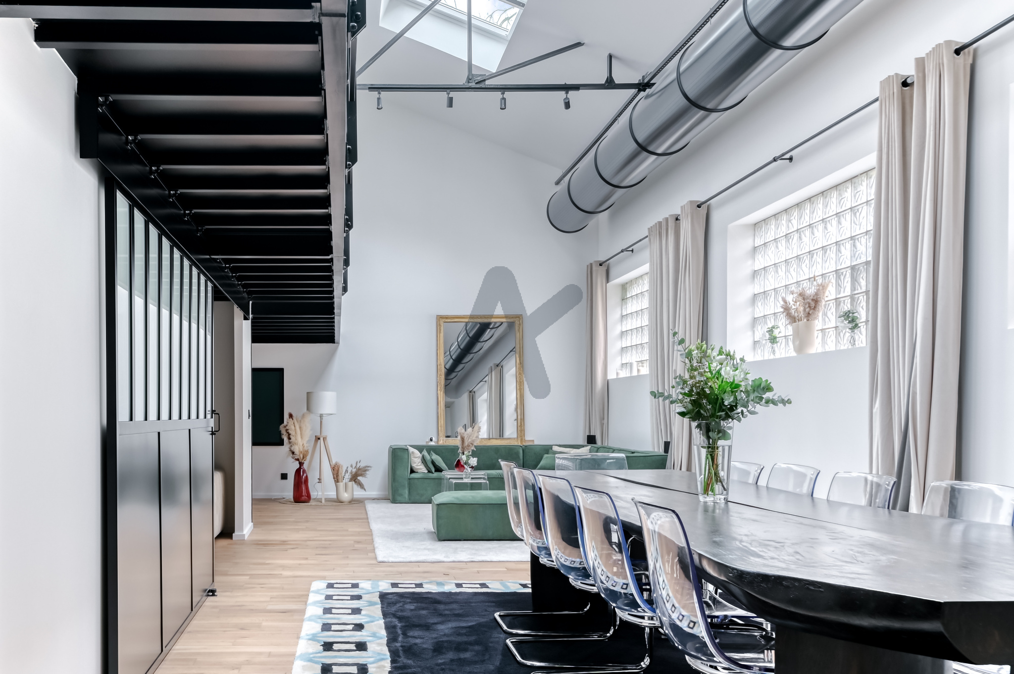 LYON 7- Gerland- Artillerie- La Gare. Entre pôles pharmaceutiques et Ecole internationale de Lyon. Ancien studio de danse réhabilité, ce loft de 204 m² s'inscrit au calme d’une cour intérieure dans un environnement préservé et discret. La pièce de vie, organisée sous verrière, développe de beaux volumes lunimeux et une circulation ouverte. La cuisine s’y intègre de manière linéaire et discrète. Le rez-de-chaussée comprend également un salon, un espace de projection et une chambre avec salle de bains. À l’étage, un escalier métallique mène à deux espaces distincts : une suite avec dressing et salle de bains, et, en second plan, deux chambres reliées par une passerelle, avec leur salle de bains. Une écriture architecturale lisible qui confère au lieu un esprit atelier adapté à une vie familliale alliant fonctionnalité et caractère. Climatisation. Proche métro J.Macé, Tramaway et bus. Bien soumis au statut de la copropriété Pas de procédure en cours - Classe énergie : B Classe climat : A - Montant estimé des dépenses annuelles d’énergie pour un usage standard : entre 1390 € et 1930 €. Les informations sur les risques auxquels ce bien est exposé sont disponibles sur le site Géorisques : www.georisques.gouv.fr - ARLIM PRESTIGE Valerie Méry Tel: 06 23 12 00 32