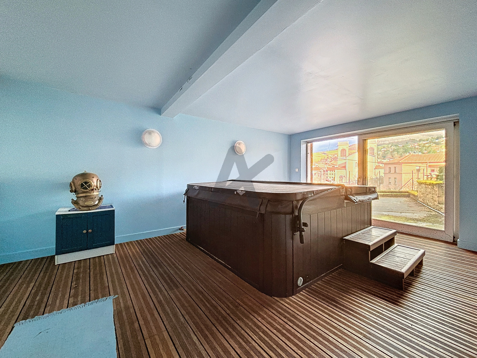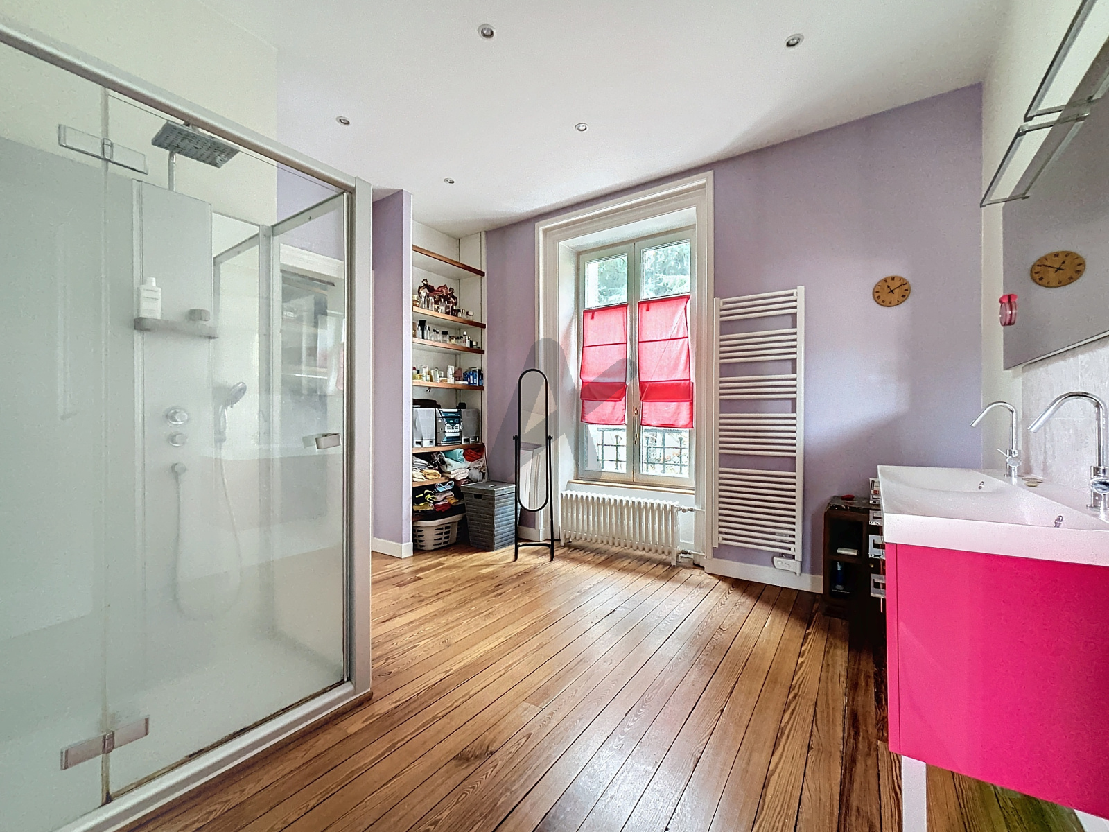 Au centre de Tarare, en surplomb de l'eglise de la Madeleine, venez découvrir cette jolie maison familiale rénovée et pleine de charme . Jolie vue dégagée sur la ville et les collines en face , cette maison se compose d'une vaste entrée en carreaux ciment avec une escalier autoporté en pierres , 2 salons en parquet massif avec cheminée et vue sur l'église, une cuisine équipée et salle à manger, un grand bureau, vestiaires et toilettes . A l'etage, une chambre parents avec vue, antichambre, placards,dressing, cheminée et grande salle de bains, 3 belles chambres, une salle de bains avec création possible d'une 3eme salle de bains . Au 2eme étage, une ancienne chambre de bonne et des combles à aménager . Sous- sol avec cave à vins, buanderie avec lavoir, piece avec jaccuzi, terrasse .