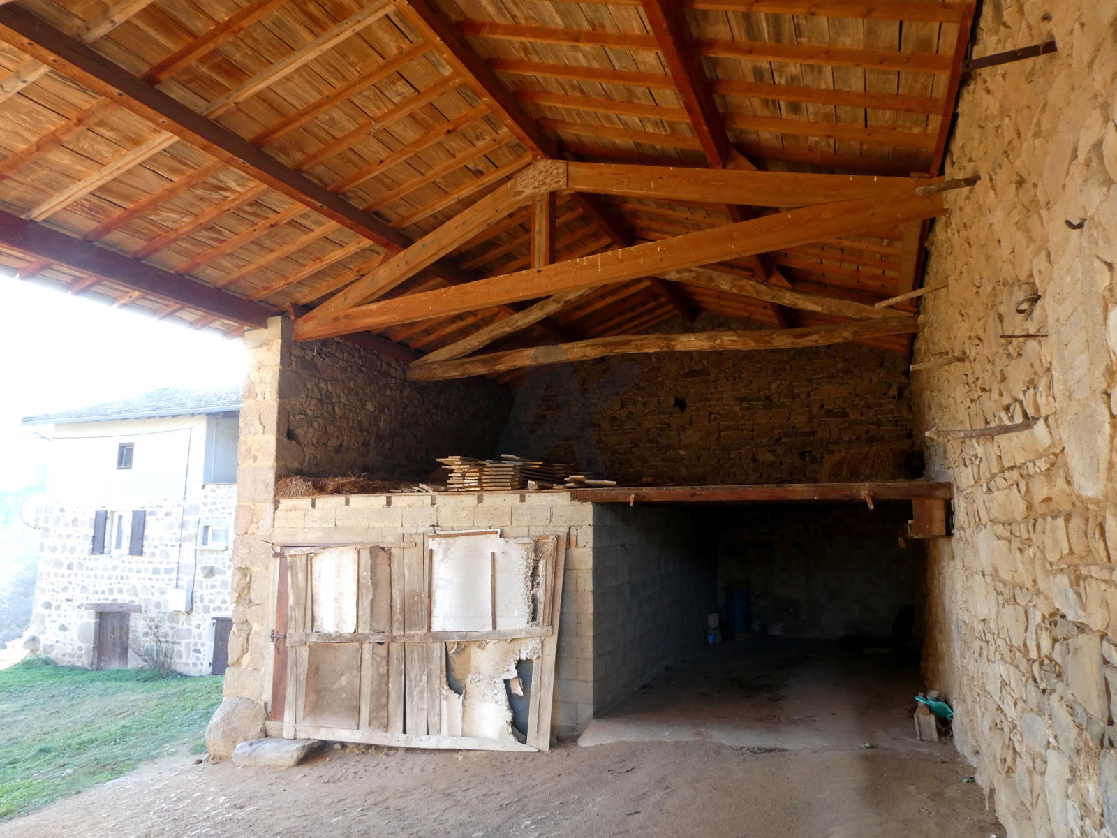 ST LAURENT DE CHAMOUSSET - A 5 Min du centre mais en pleine campagne - Très belle ferme de caractère offrant un très beau potentiel global de près de 200 m² habitables après rénovation. Actuellement ce bien se compose au RC : d'une grande cuisine/séjour, une salle de bains, 3 chambres et cellier, chaufferie/bucher ; chauffage central mixte bois/fuel. Ainsi que plus de 100 m² de combles aménageables. Elle est élevée sur caves et dispose d'une dépendance à usage de hangar pour partie (accès voiture possible) ainsi qu'une ancienne écurie.