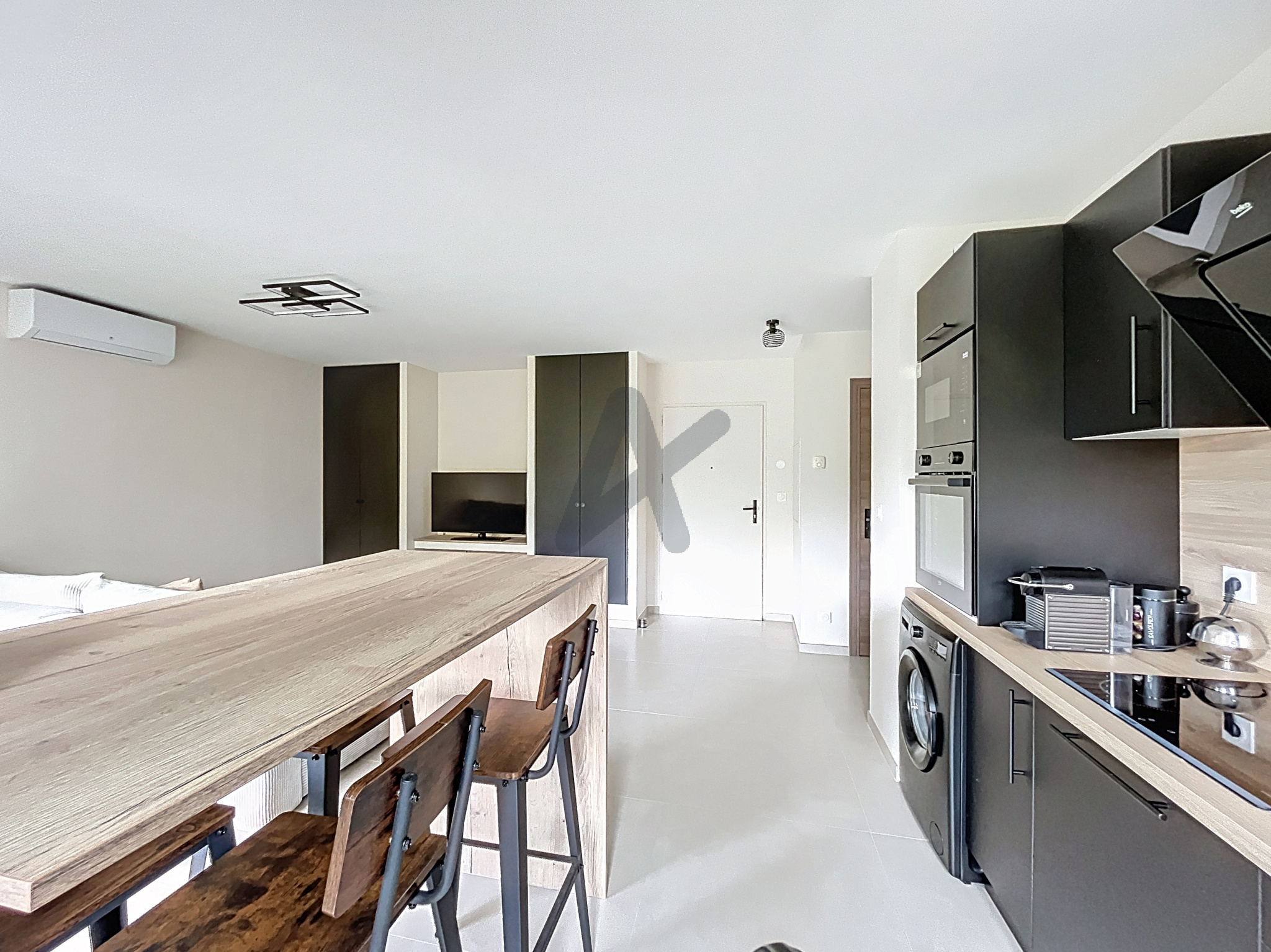 L’appartement se compose d’une agréable pièce de vie lumineuse, équipée d’un chauffage au sol et d’une pompe à chaleur, une cuisine est entièrement aménagée et équipée, prête à accueillir vos repas ou vos soirées entre amis, une chambre avec placard mural, une salle d'eau et 1 WC séparé.