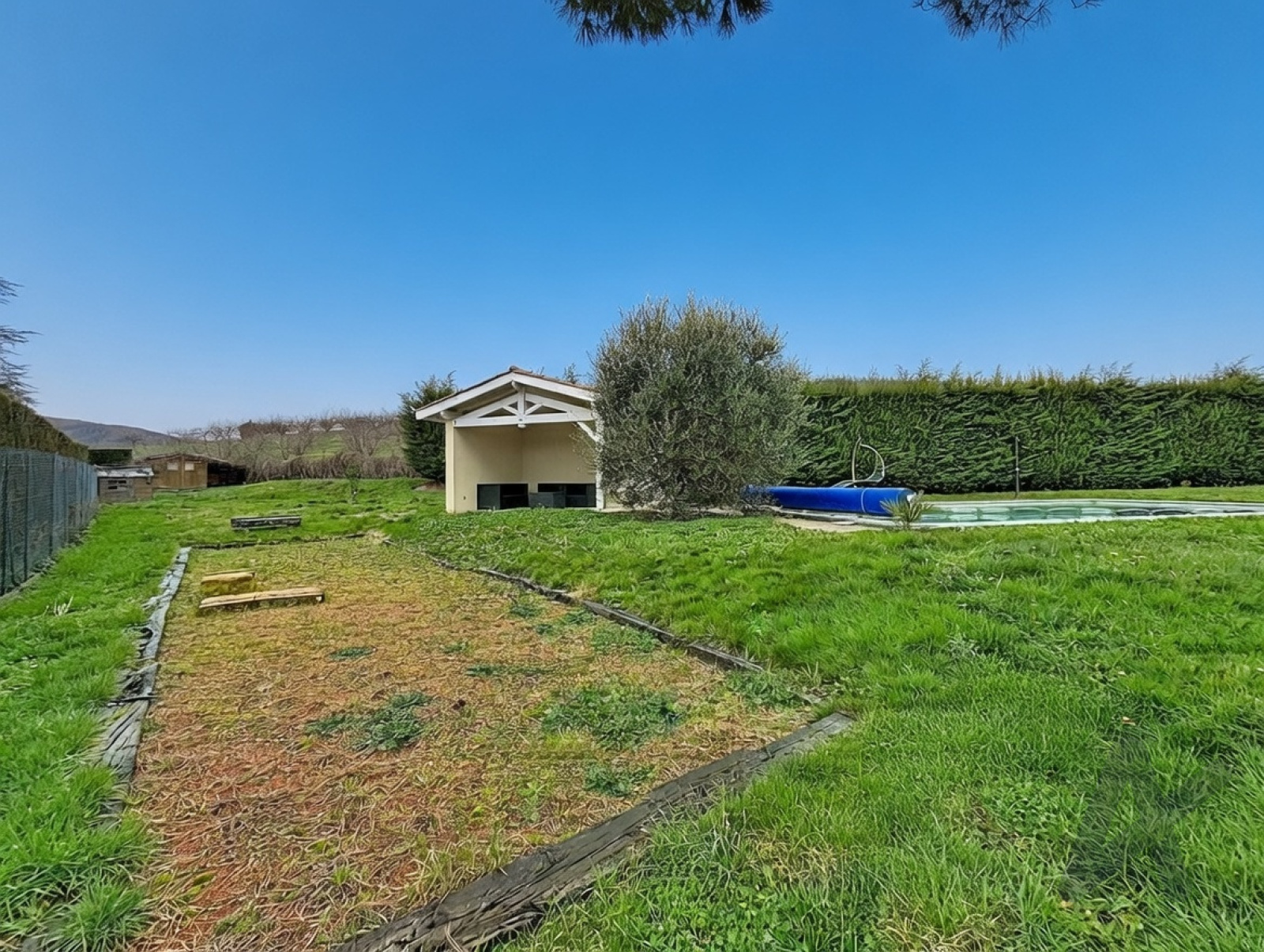 Puits perdu derrière le pool house pour récupération des eaux pluviales