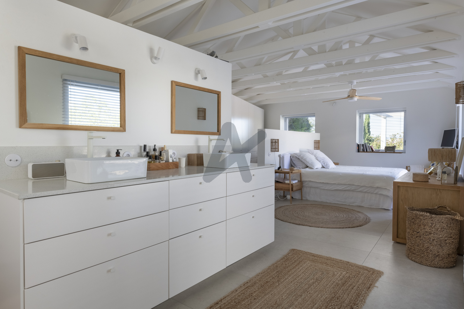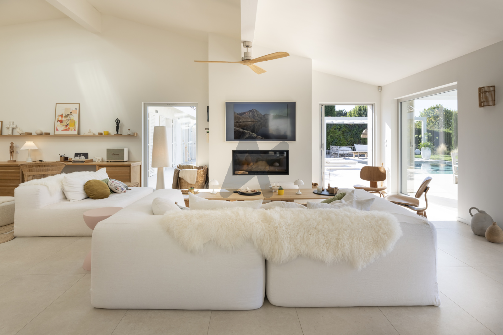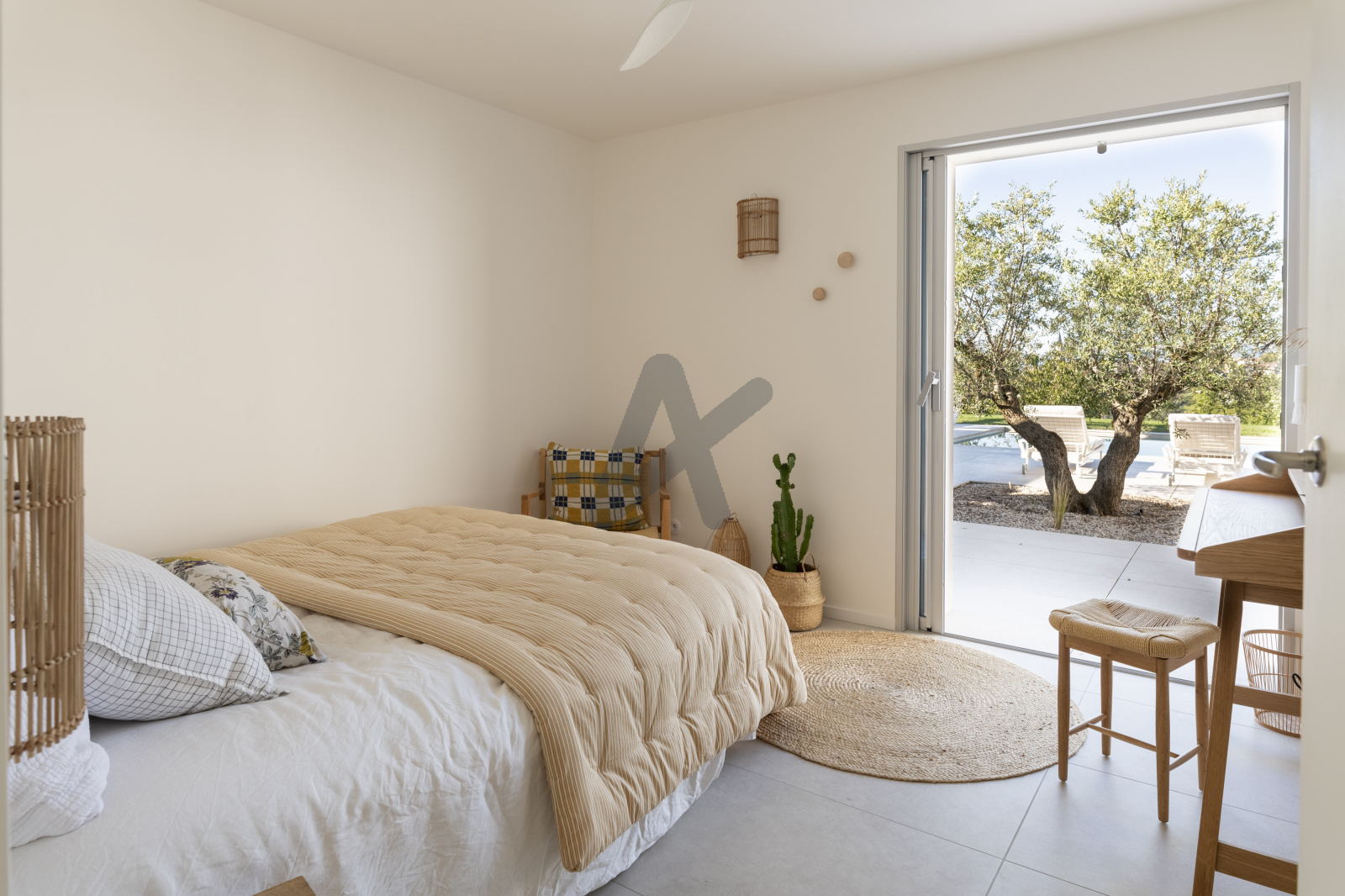 La maison de plain pied se compose d'une entrée avec rangements, d'une pièce à vivre de 95 m2 env. baignée de lumière, en accès direct aux terrasses, au jardin et à la piscine. La cuisine ouverte s'organise autour d'un très grand ilôt central et bénéficie de nombreux rangements, elle s'accompagne d'une lingerie et d'un cellier. La partie nuit se compose d'un espace pouvant faire office de bureau ou de 5ème chambre, d'une suite avec sa propre salle de douche, de deux autres chambres, d'une salle de bains, ainsi que d'une suite parentale de 40m2 env. avec dressing, toilettes séparées et salle de douche. Toutes les chambres ont accès aux terrasses ou au jardin.