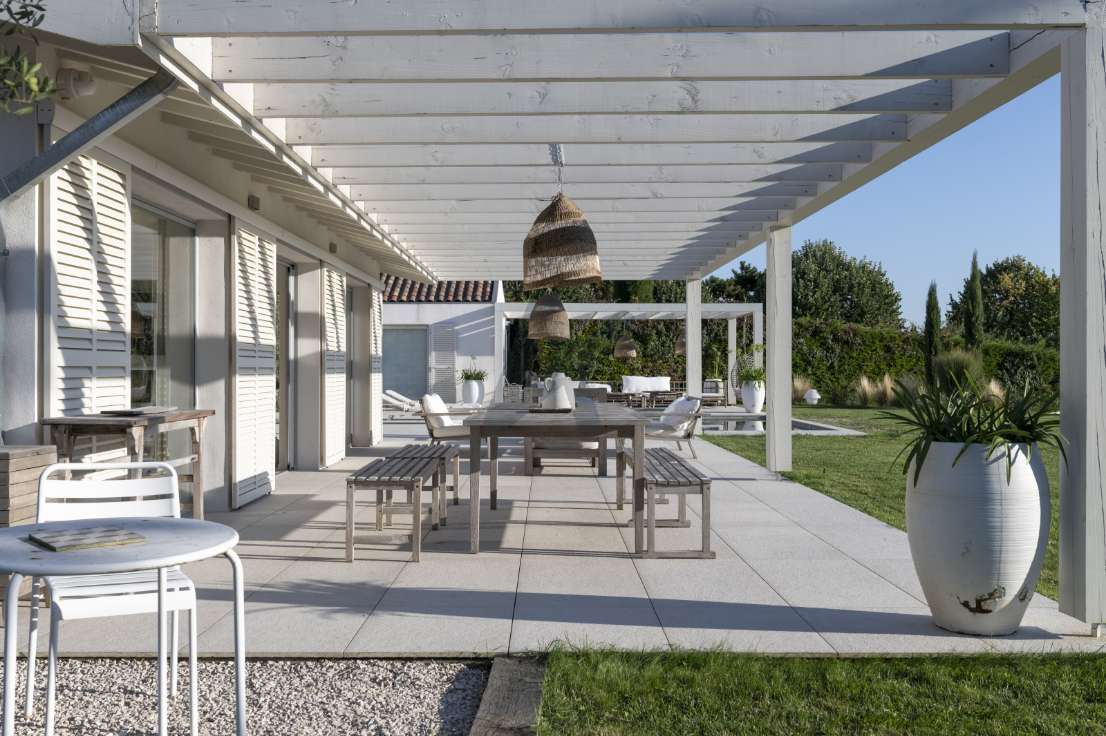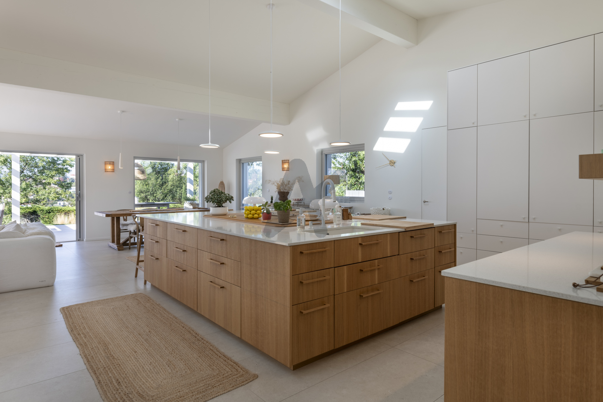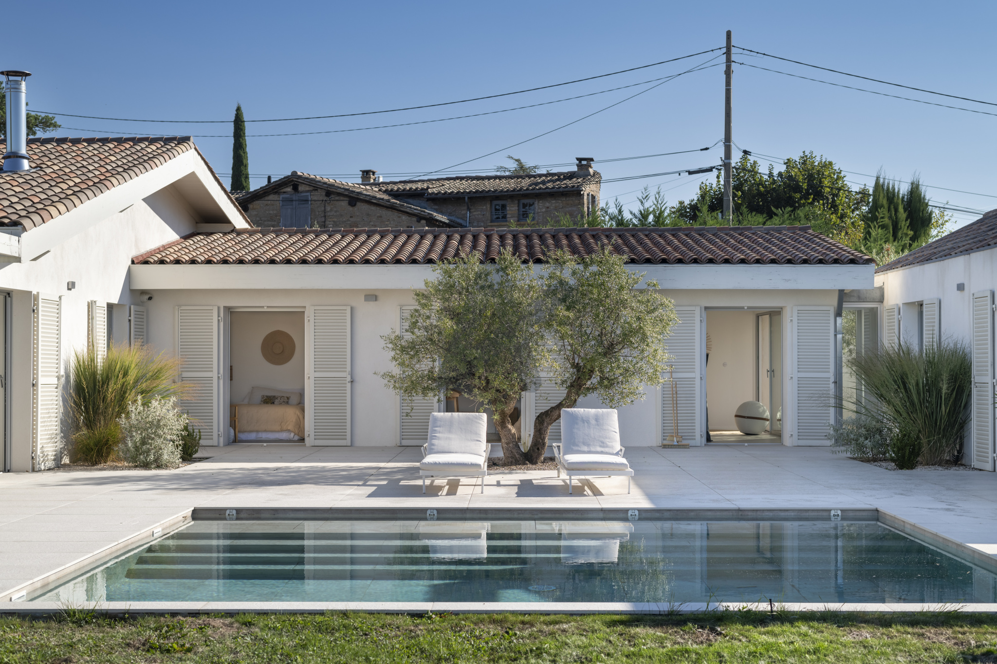 La maison de plain pied se compose d'une entrée avec rangements, d'une pièce à vivre de 95 m2 env. baignée de lumière, en accès direct aux terrasses, au jardin et à la piscine. La cuisine ouverte s'organise autour d'un très grand ilôt central et bénéficie de nombreux rangements, elle s'accompagne d'une lingerie et d'un cellier. La partie nuit se compose d'un espace pouvant faire office de bureau ou de 5ème chambre, d'une suite avec sa propre salle de douche, de deux autres chambres, d'une salle de bains, ainsi que d'une suite parentale de 40m2 env. avec dressing, toilettes séparées et salle de douche. Toutes les chambres ont accès aux terrasses ou au jardin.