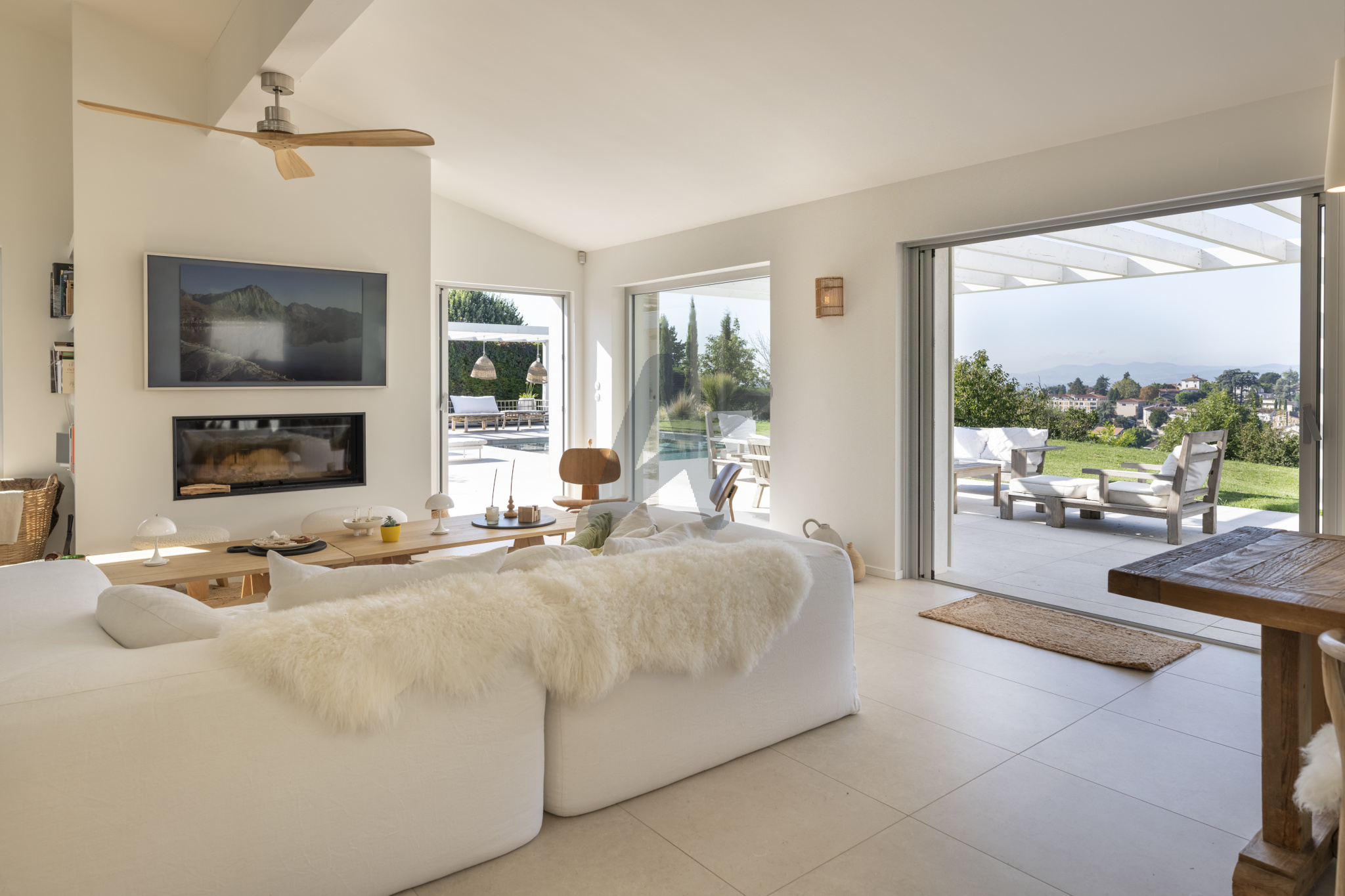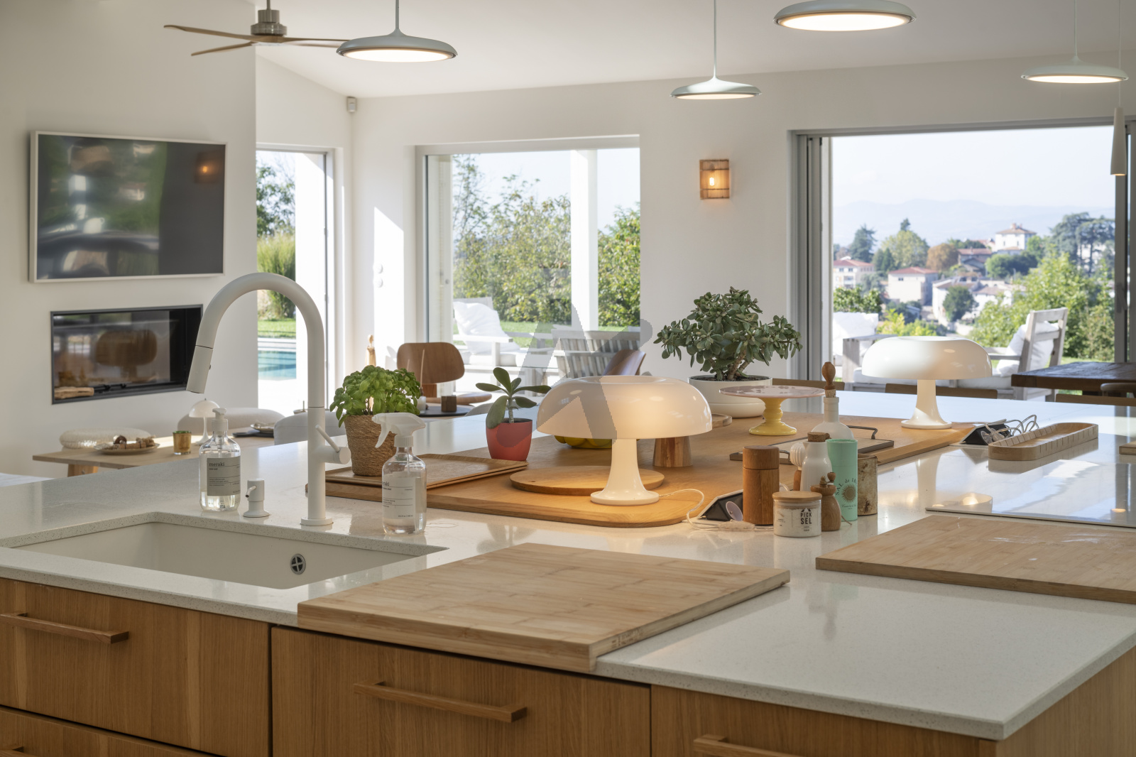 Saint Didier au Mont d'Or - Unique, au calme absolu, avec une vue exceptionelle et une exposition sud ouest, superbe maison de plain pied de 237 m2 env., entièrement rénovée en 2021, sur un terrain clos et sans vis à vis de 2 310m2 env.