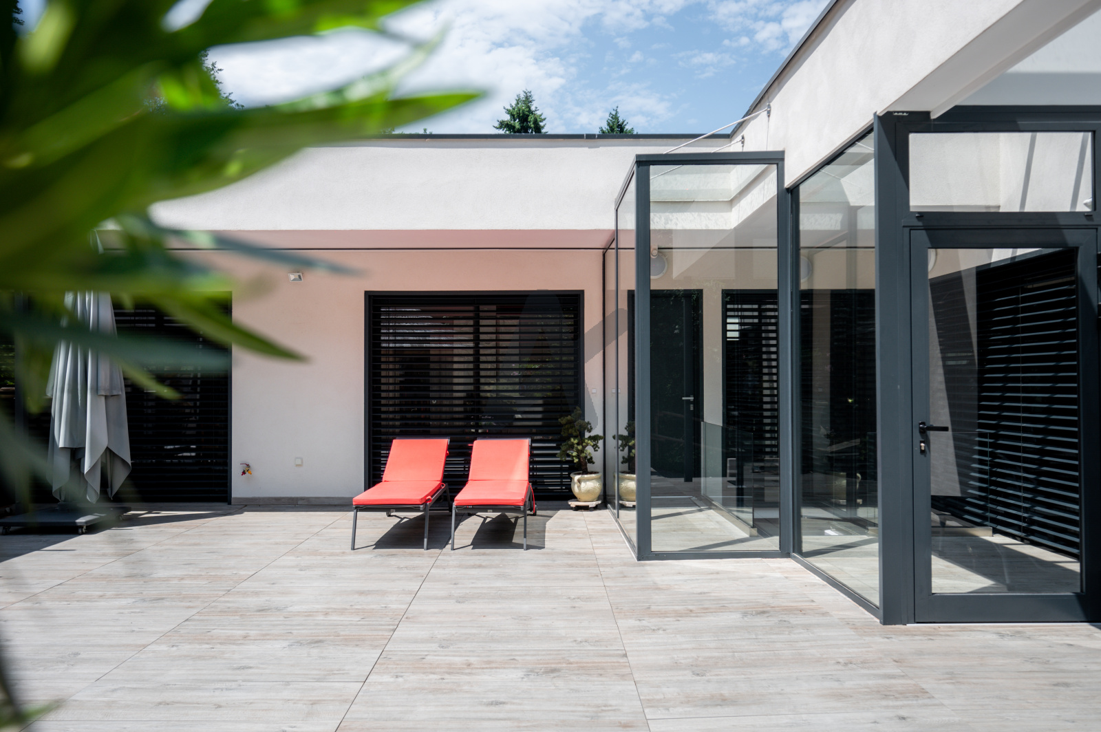 Située à proximité immédiate du charmant village de Charbonnières-les-Bains, cette magnifique maison contemporaine de 180 m² sur un terrain de 2500 m², construite en 2018, vous offre un cadre de vie exceptionnel, alliant modernité et confort. Lumineuse et fonctionnelle, cette propriété dispose d’une vaste pièce de vie (80m2) ouverte avec cuisine américaine entièrement équipée, d'un deuxième salon coin TV, d'une suite parentale, d'une chambre supplémentaire avec salle d'eau et toilette, ainsi qu’un studio indépendant de 35m2 avec salle d’eau et WC, idéal pour accueillir des invités ou créer un espace de travail privé. De grandes baies vitrées, accompagnées d’un système de BSO (Brise-Soleil Orientable), apportent une luminosité optimale tout au long de la journée tout en régulant la chaleur et l’intimité. La maison comprend également un garage double qui vient compléter l’ensemble, offrant tout le confort nécessaire pour vos véhicules et vos équipements. Sa localisation est un véritable atout : à seulement 10 minutes du centre de Lyon grâce au tram-train, vous bénéficiez d’un accès rapide à la ville et aux écoles tout en profitant du calme et de la nature environnante.