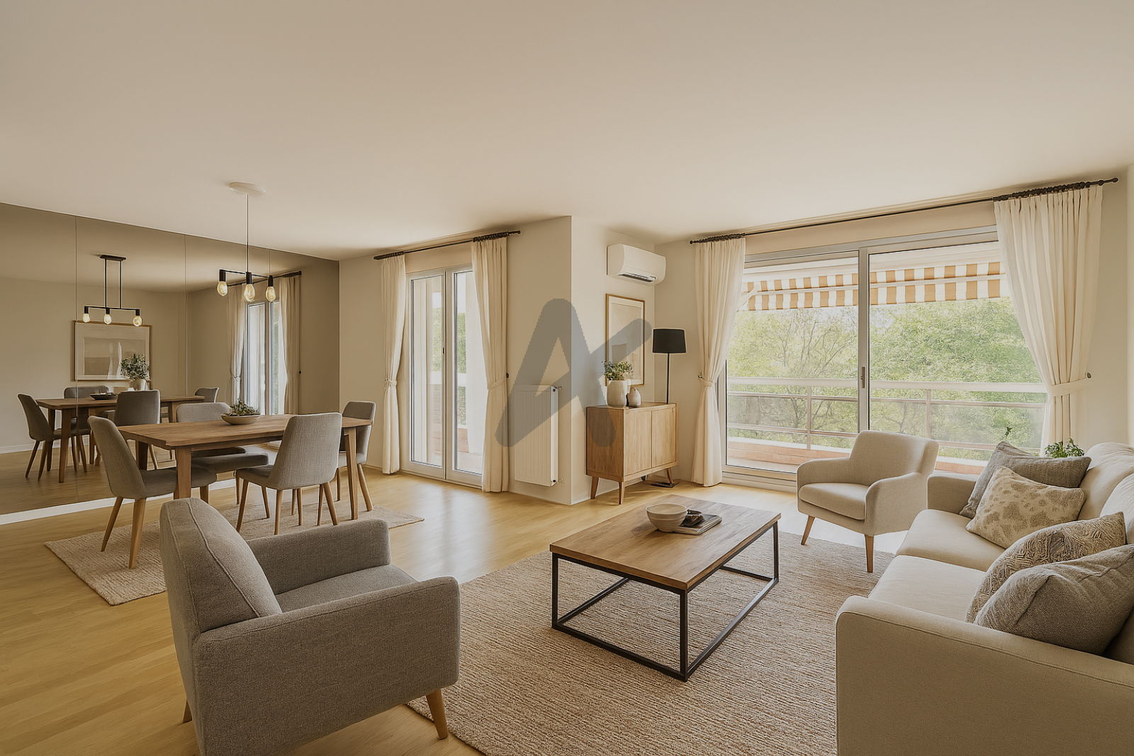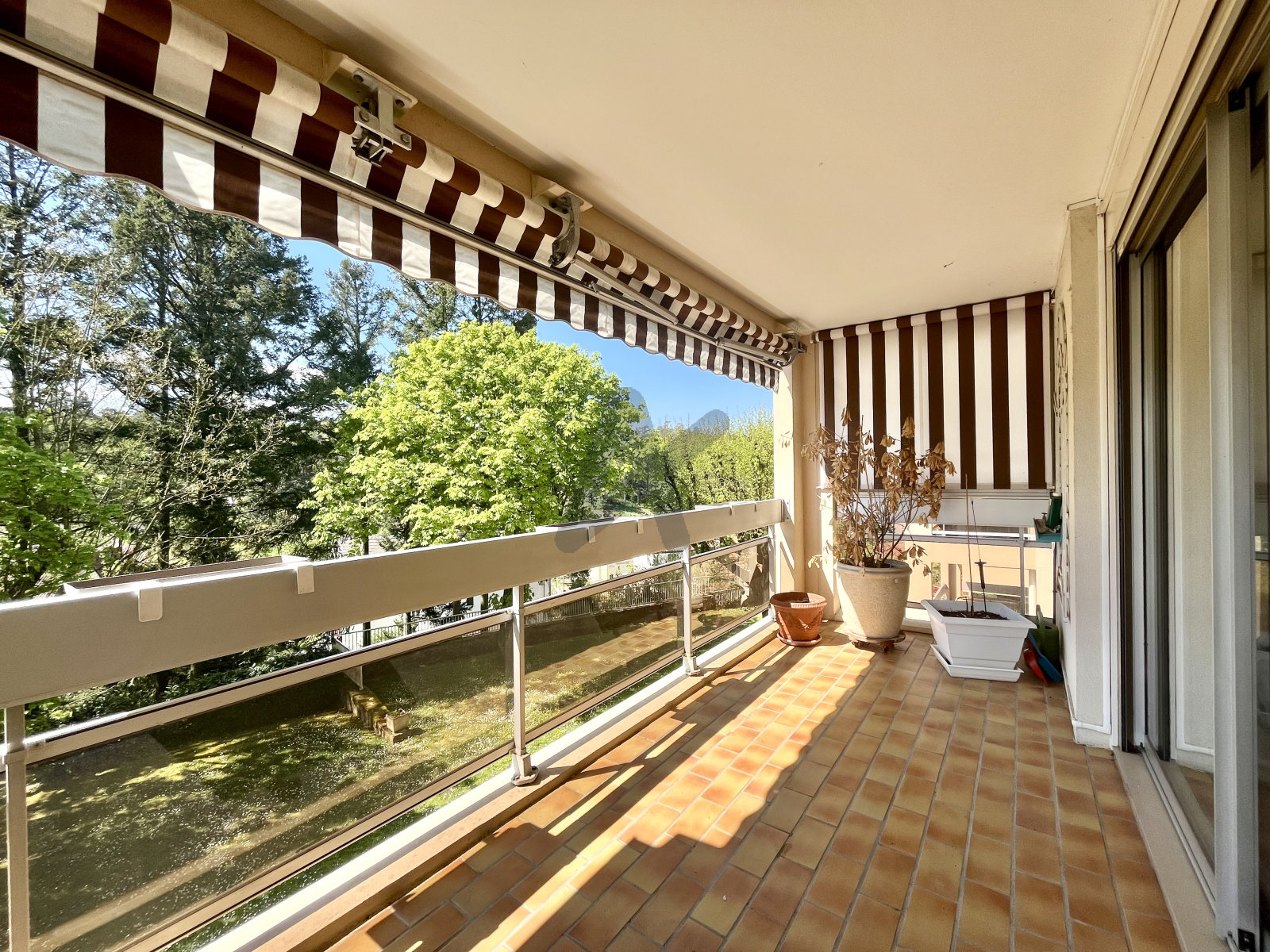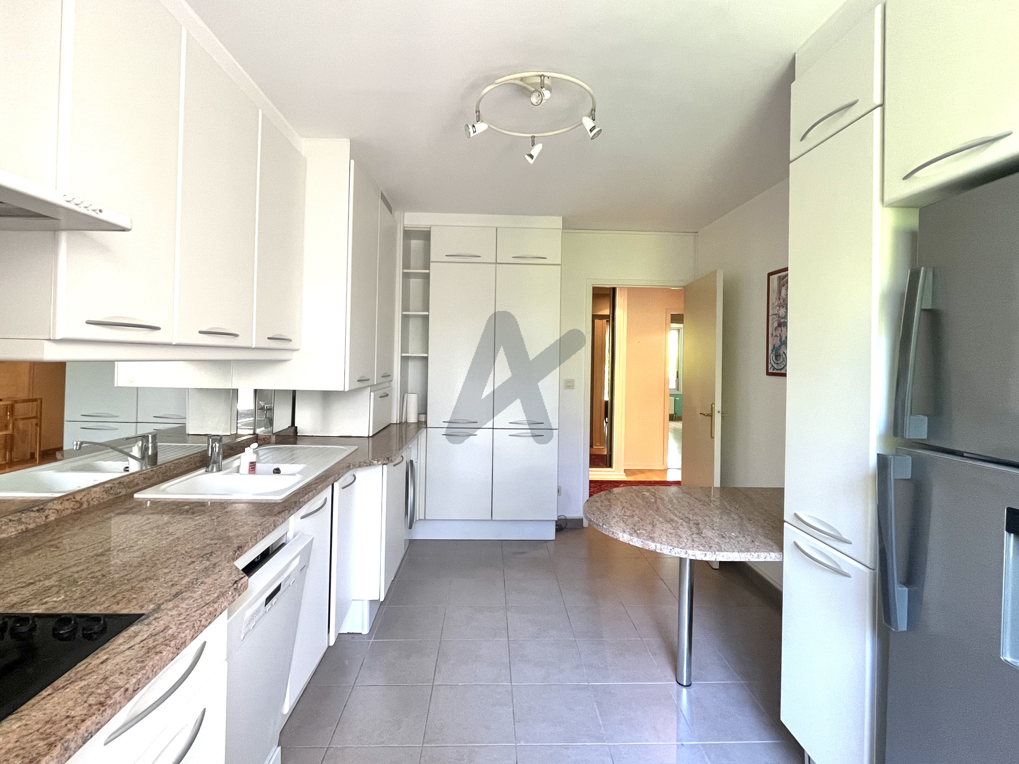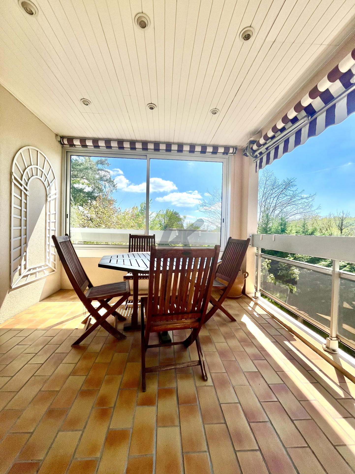 Vous rêvez d'une vraie vie de village et de tout faire à pied ? Cet appartement traversant situé au 2e étage d'une petite résidence de standing jouit d'un emplacement unique et recherché, au calme, dans la verdure, à 100 mètres à peine de toutes les commodités (commerces, gare, écoles...). Ses 108m2 parfaitement agencés, sans aucun m² perdu, se répartissent en 5 pièces principales de la manière suivante : une entrée avec placard, une cuisine dînatoire aménagée et équipée, un double séjour climatisé, 3 chambres dont une suite parentale avec salle de bains privative, 2 wc et 1 salle de douche. La grande terrasse accessible depuis le salon et la salle à manger est suffisamment spacieuse pour accueillir un salon de jardin tout en conservant un coin repas, Possibilité d'ouvrir la cuisine sur le séjour pour créer un espace de vie de plus de 48m².