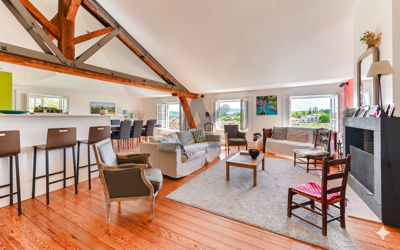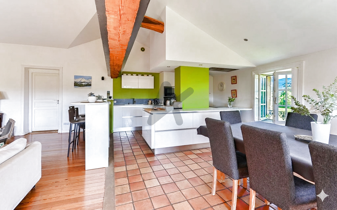 L'espace de vie, composé d'un vaste séjour avec cheminée, d'une salle à manger et d'une cuisine ouverte équipée séduit par son volume, sa luminosité et sa vue exceptionnelle. La Buanderie, le cellier et un WC complètent discrètement cet espace.