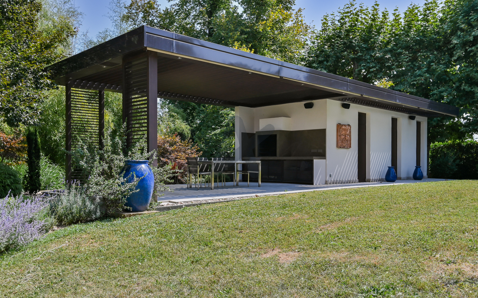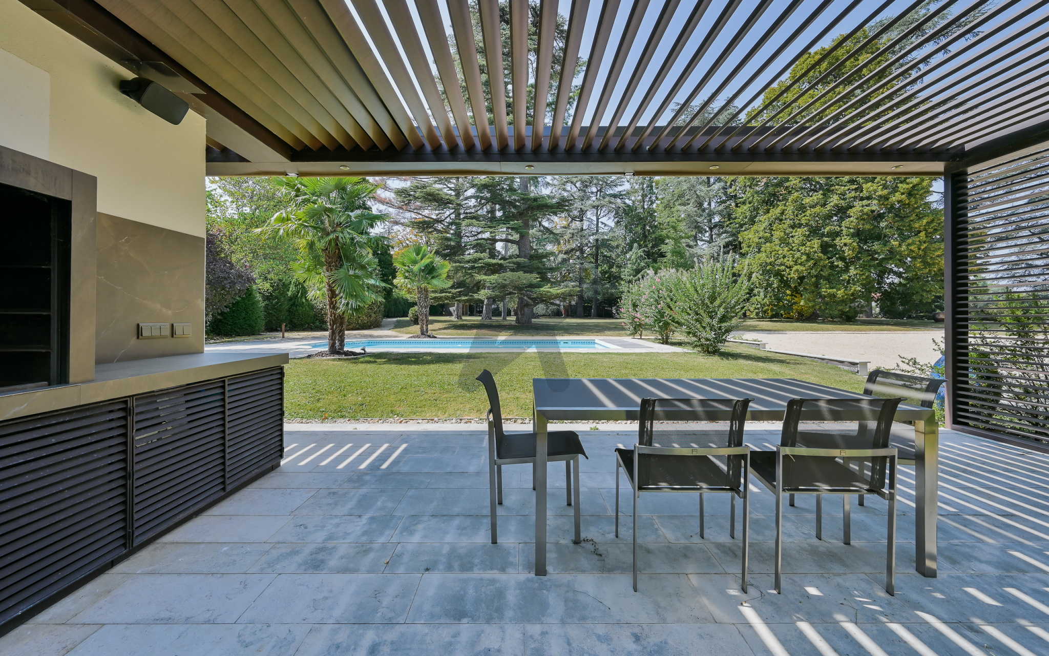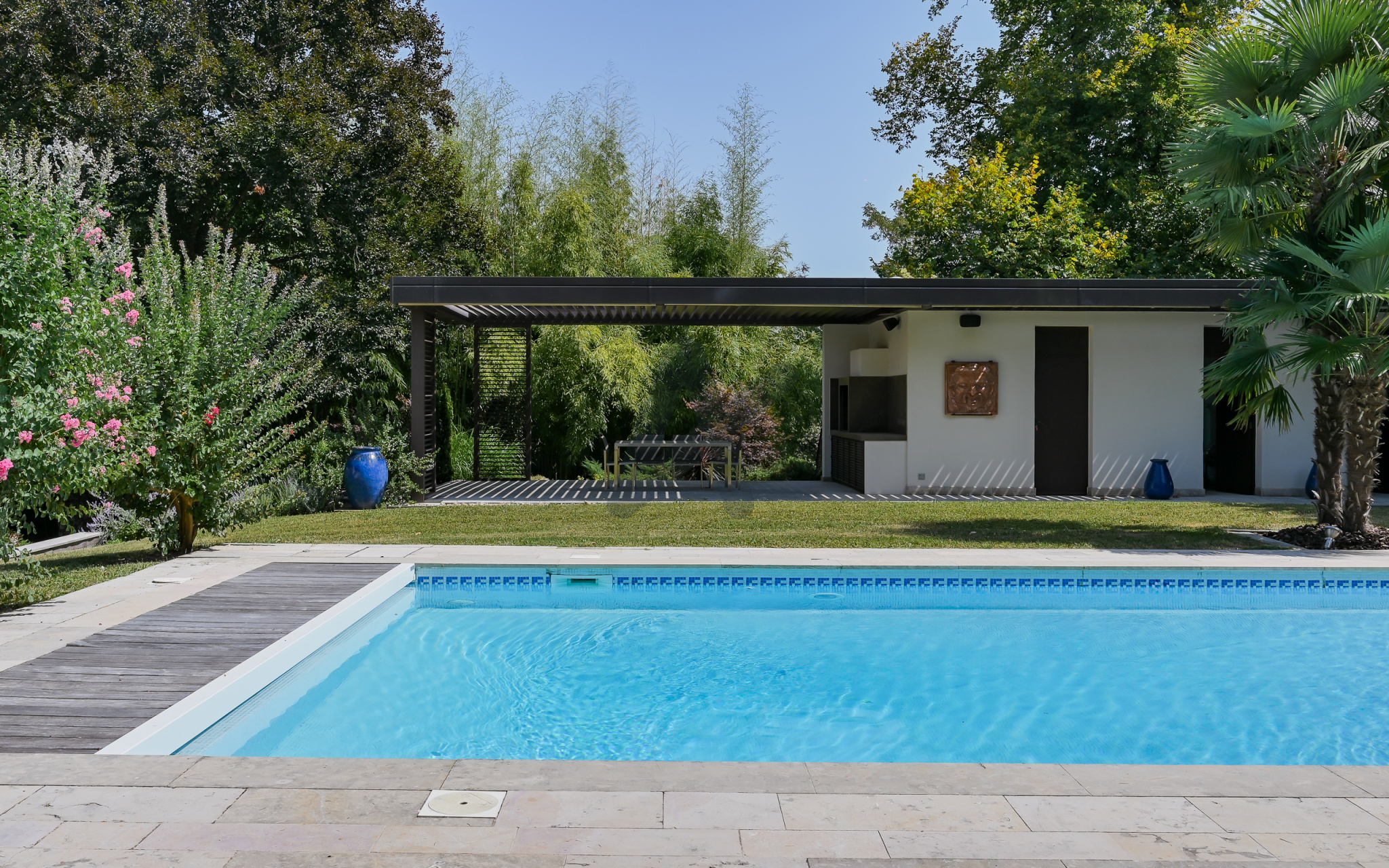 À l’extérieur, le parc invite à la détente avec un espace piscine comprenant un bassin, traité au sel, sécurisé et chauffé et son pool-house de 21 m², idéal pour les journées estivales.